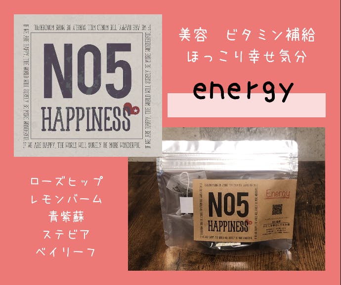 2020/06/02 10:00ご支援くださった方、ご覧頂いている方、ありがとうございます。リターンでお届けさせて頂くオリジナルハーブティー、本日はenergyのご紹介です。一言でいうと、The♡女子のためのハーブティー!美容を考えてビタミンCがたっぷり含まれているローズヒップ、セロトニンという幸せホルモンの分泌を促す、気分も良くなるブレンドです。そして、ハーブティーとしてはちょっと珍しいシソ、自然な甘みのステビアを使用して、香りと甘み(砂糖は使っていません)に特徴のある仕上がりになりました。ゆっくりお茶をしたり、ご自身のための贅沢な時間を過ごすときのお供として、HAPPYに飲んで頂きたい一品です★▼ さらに詳しい内容はこちらからどうぞ。No.5❤︎HAPPINESS もっと見る