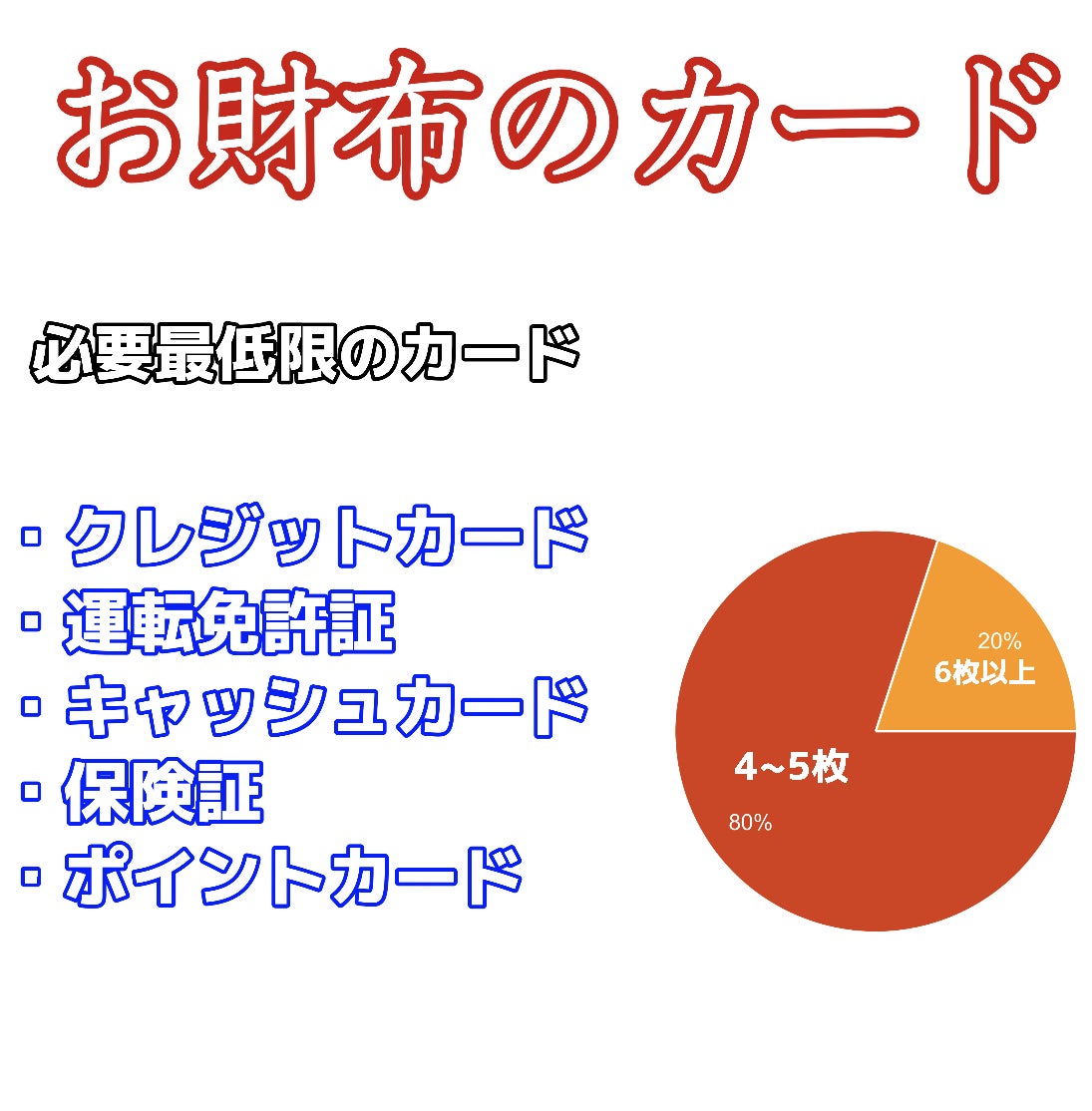 必要最低限のカードとしては、クレジットカード / 運転免許証 / キャッシュカード / 保険証 / ポイントカードでした。