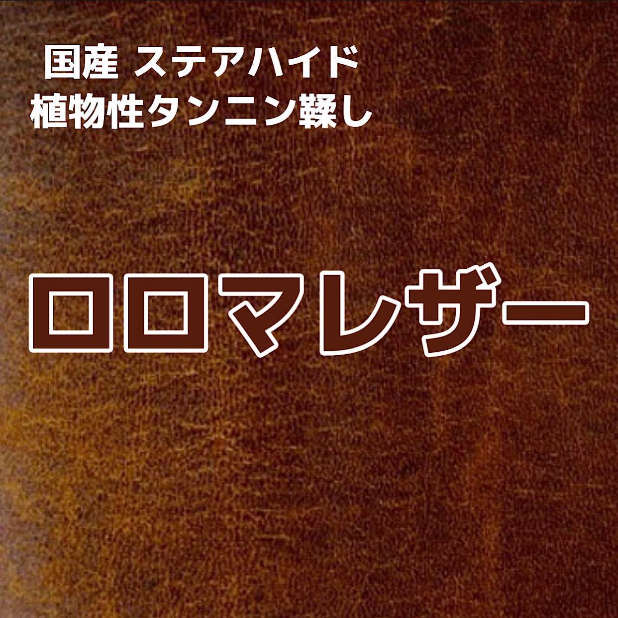 革には鞣しと呼ばれる工程がありますが、本製品の革に使用されるロロマレザーは姫路にあるタンナーで植物性タンニン鞣しで2度鞣した牛革になります。