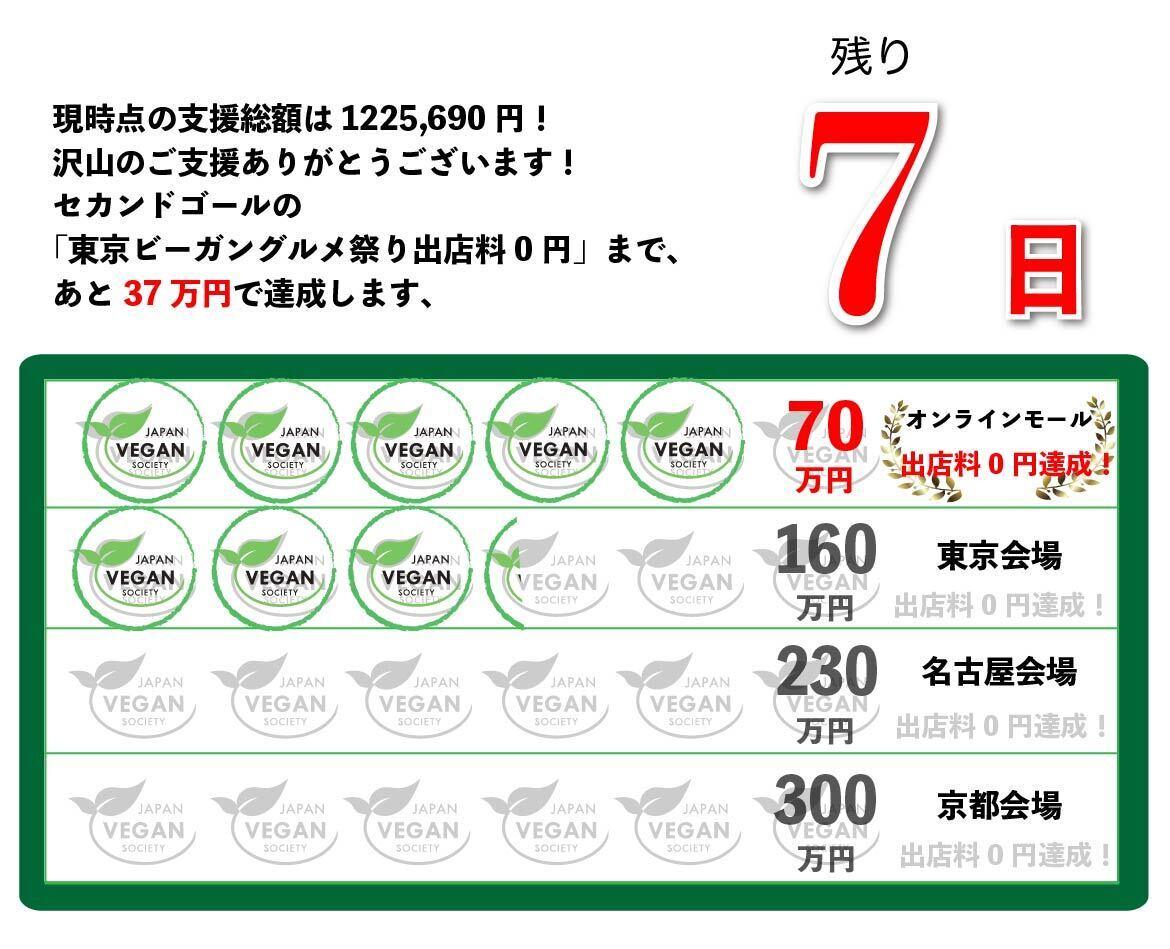 ③名古屋ビーガングルメ祭り(10/18)会場を出店料0円にするためにサードゴールとして「230万円」
