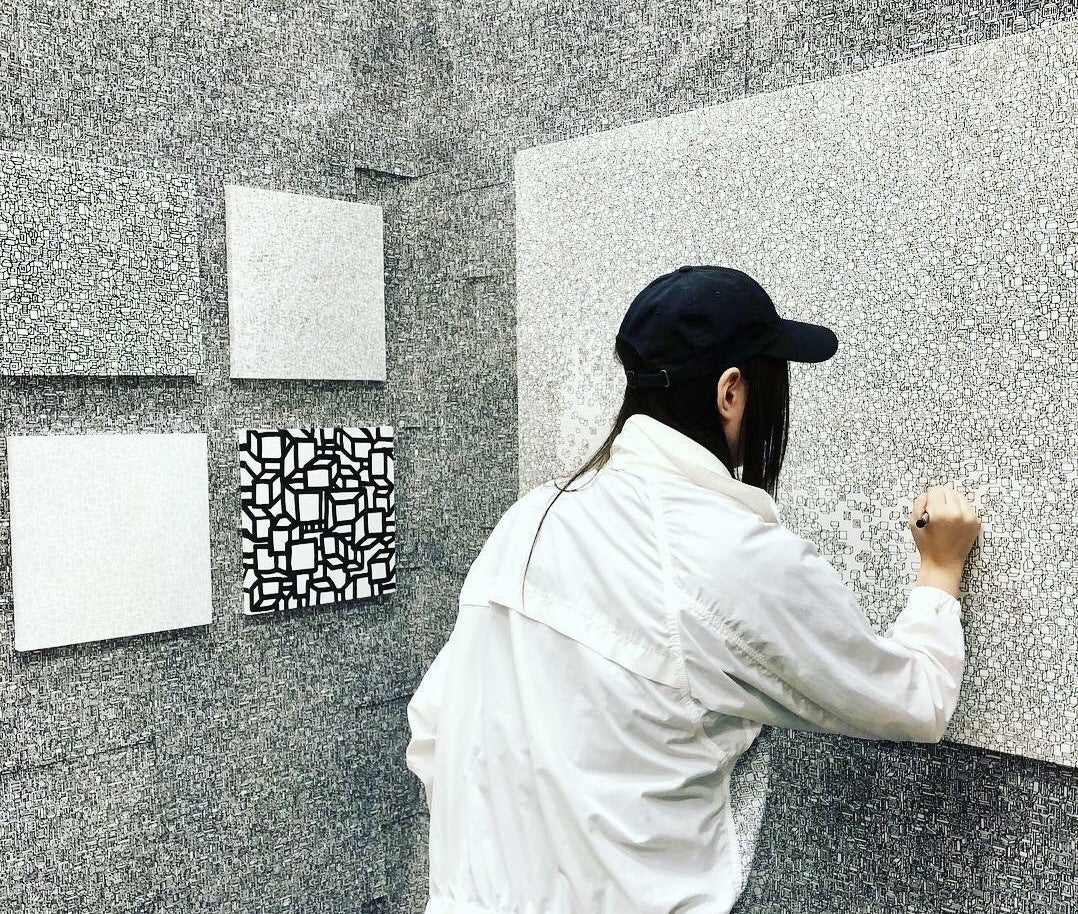 現在は四角形が密集している集合体の作品で活動をしている。今年の2月頃twitterで1.2万件のいいねがつき、少し注目を浴びた。