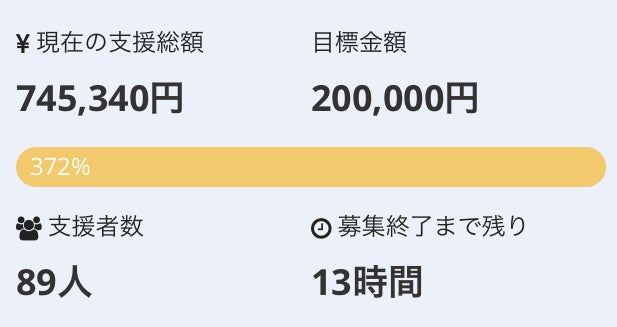 私のクラウドファンディングは本日23:59で終了いたします。あっという間でした…