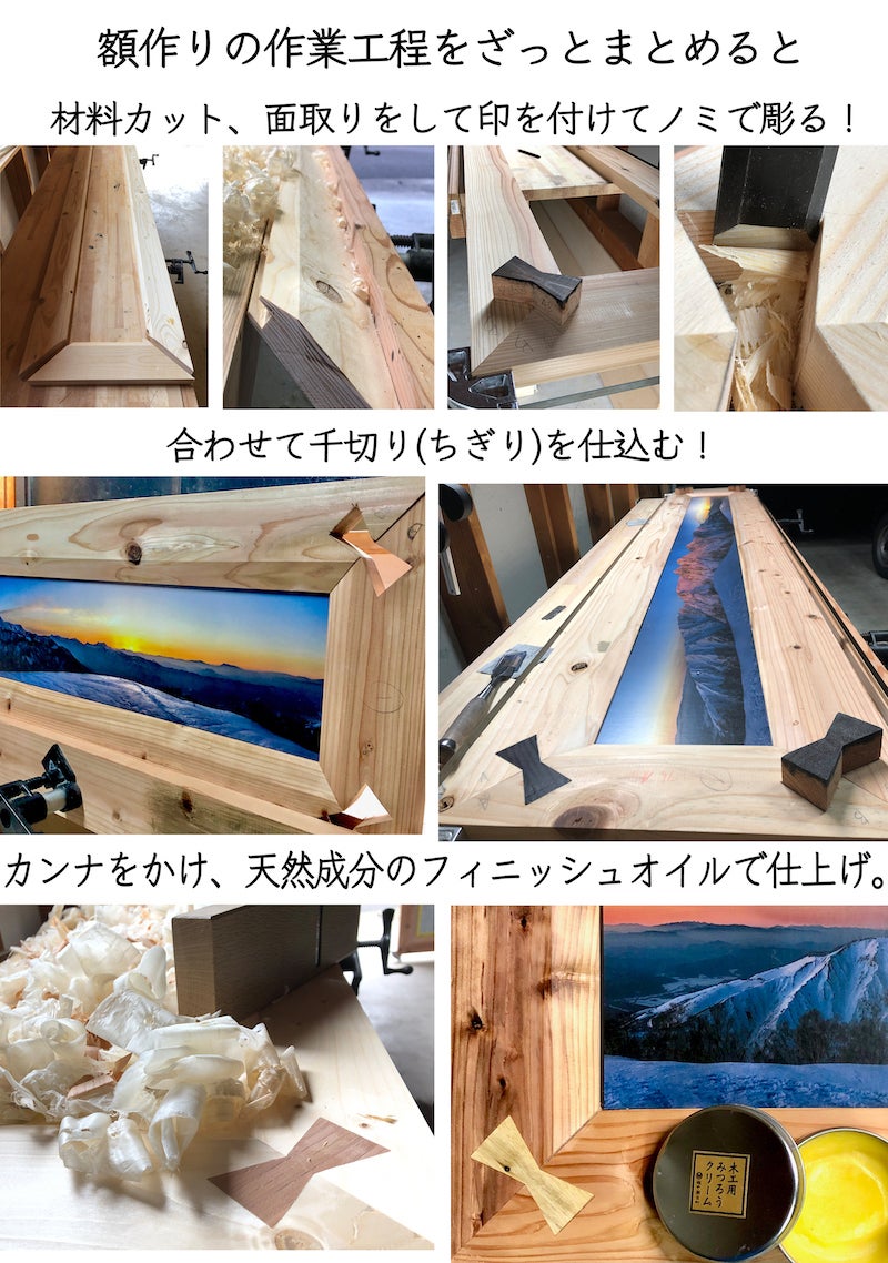 しかし作っても作っても満足いくものができずにこだわり続けて早2年。気がつけば写真なのか額なのか、もはやどっちが主役なのか分からないくらい額作りに没頭するようになり、これまで20作品以上を知り合いのお店や事務所に飾っていただきましたが、そろそろ収益化しないと破産すると思いご支援を仰ごうと考えた次第であります。