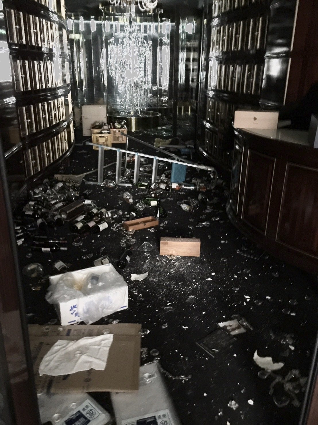 震災直後の様子です。熊本は地震の被災により「激甚災害指定」されました。 これにより復興政策で「グループ補助金(建物・設備復旧費の最大4分の3を国・県が補助)」等がありましたが、「風営法の事業者は該当しない。社会通念上、必要とされる業種ではない。」との理由で断られ大変悔しい思いをしました。