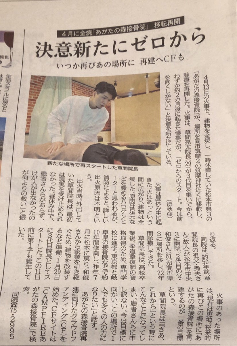 先週、あがたの森接骨院の記事が長野の信濃毎日新聞MGプラスに掲載されました!!