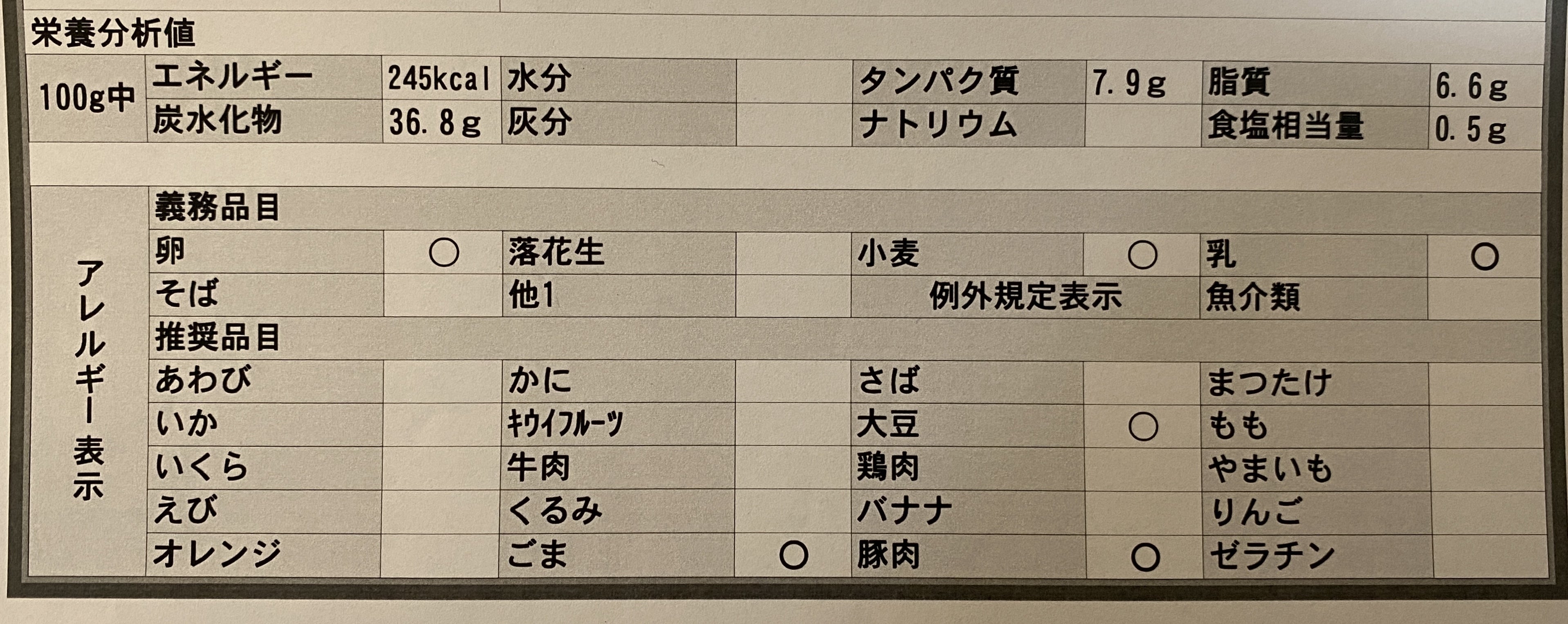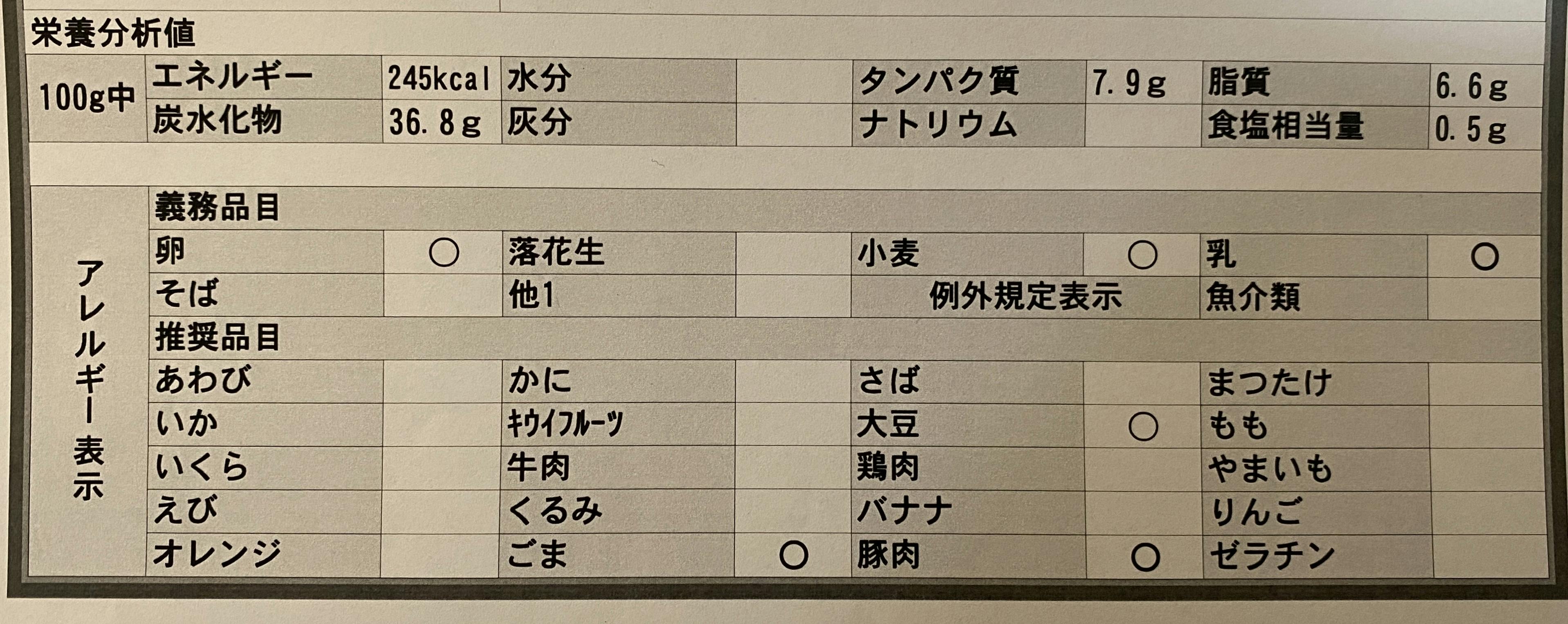 原材料については下記の通りです。アレルギー対応等ご参考にしてください。