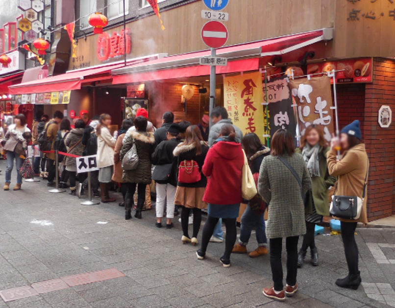 いつも明るい活気で賑わう神戸南京町の一画でこんなにもたくさんのお客様が列を成していただき弊社の肉まんやラーメンなどをお楽しみいただいております。