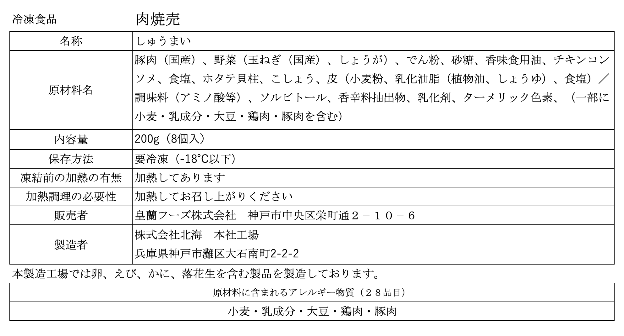 肉焼売は全て国産の原材料にこだわり、北海道産ホタテフレークを隠し味に、一層の旨みを引出しています。奥深い食感を得る為、国産豚の3種の部位使用(肩ロース・うで・もも)し、味わい深い上品なお味にに仕上げています。調理後、何もつけずお召し上がり下さい!