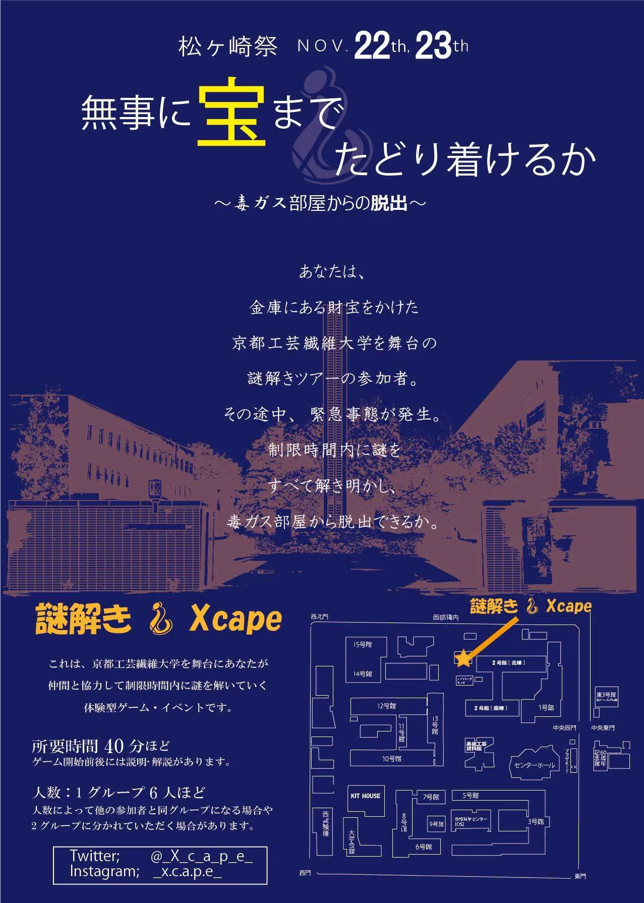 なんとありがたいことに二日間参加していただいた方もいらっしゃいました!!!ありがとうございました。本年度は、演出への拘りを変えず、京都工芸繊維大学ならではの「理系とデザイン」に特化した謎解きイベントを制作します。今現在、企画段階中ですが、キャンパスを歩き回る謎解き企画も行う予定です!!!!ご参加くださいね!