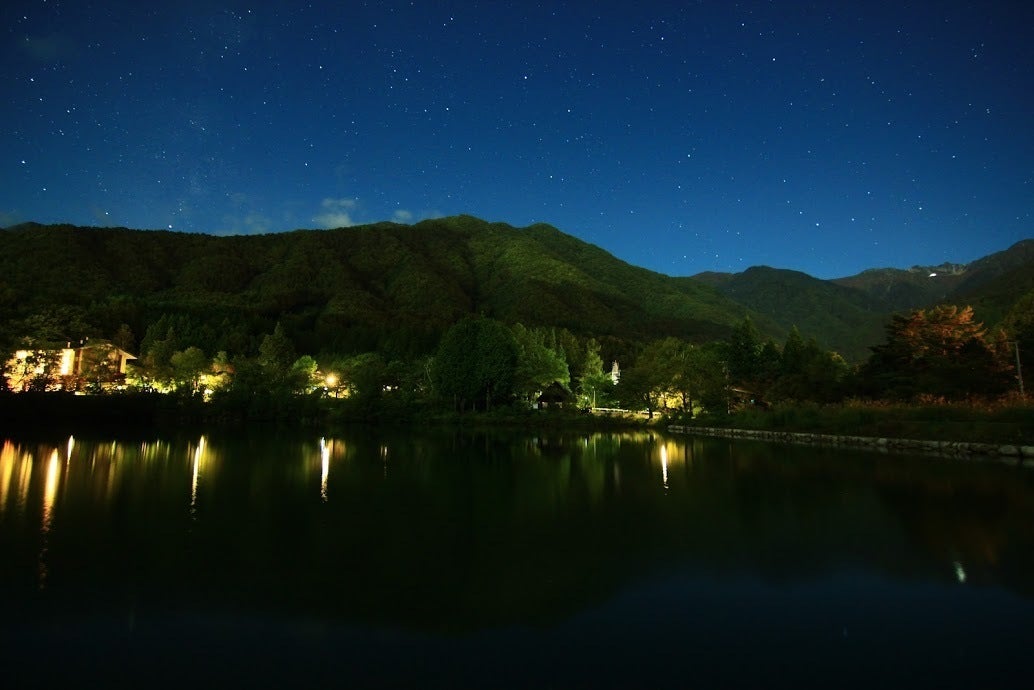 星空散歩は約30分のイベントです。ホテル前の駒ヶ池を歩きながら一番きれいにみられる場所でご案内します。20:40もしくは21:00のスタートになります。(ムササビ観察と夕食時間の調整があるためスタート時間はチェックイン時にご案内致します。)雨天時は館内で映像でのご案内になります。