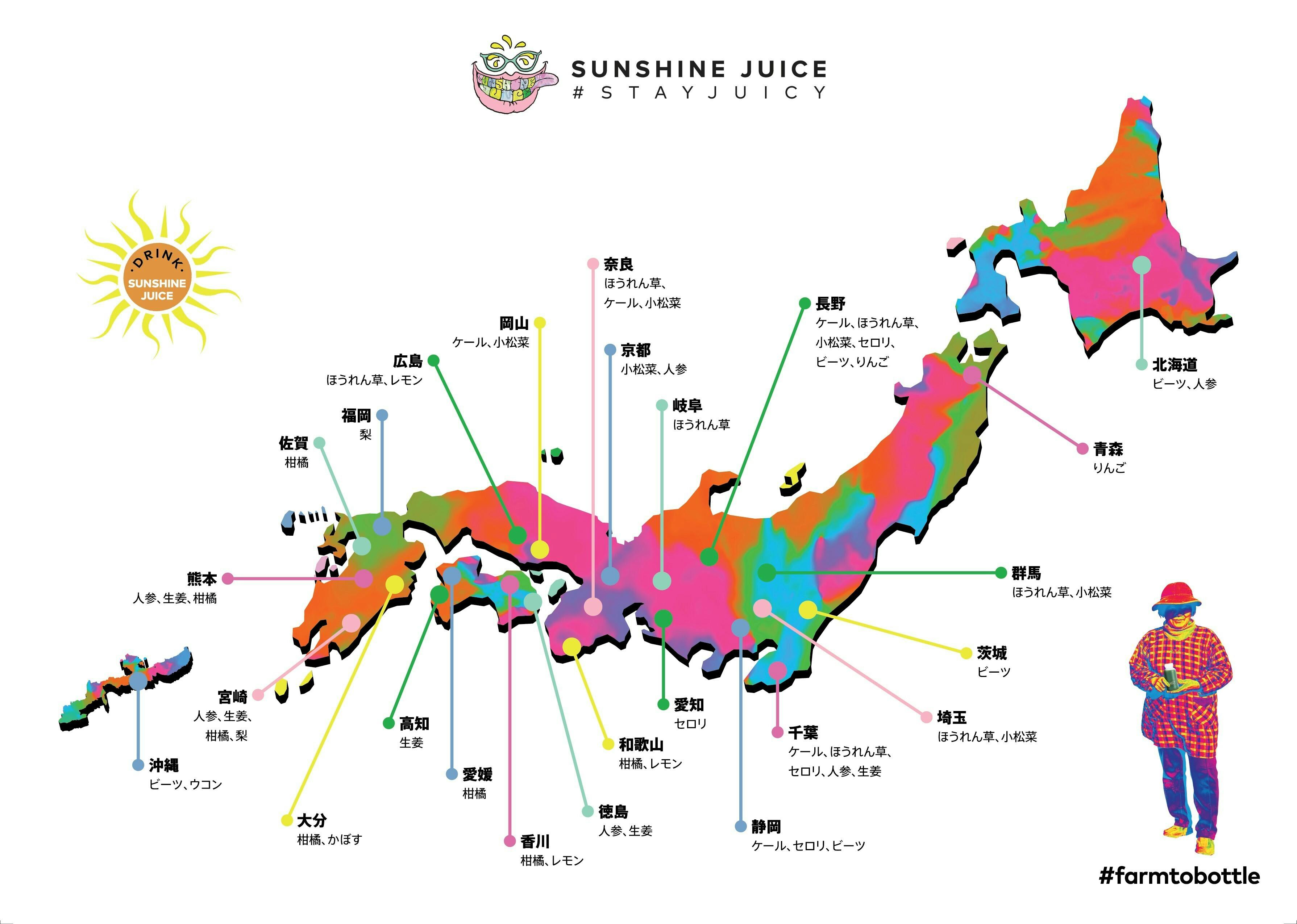 サンシャインジュースのメイン商品は「コールドプレス製法」で作られたジュースです。コールドプレス製法とは極めてシンプルな製法で、簡単に説明すると、野菜や果物に対して約2tの圧力を加えて、中の水分を圧搾してジュースを作ります。この製法のおかげで、野菜の栄養を生かしたままのパワフルなジュースを作ることができます。圧搾する際に素材に対して熱が加わらないので、栄養素が全て生きたまま、そして水溶性の食物繊維が含まれているので、体に負荷をかけずにその野菜が持つ栄養を効率的に摂取することができるのです。より詳しく知りたい方はぜひWEBサイトをご覧頂けると嬉しいです。https://sunshinejuice.jp/