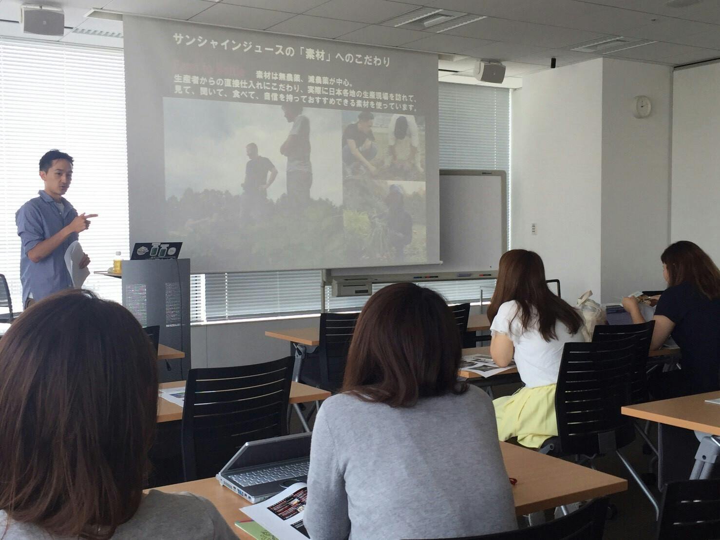 サンシャインジュース代表コウノリがオフィスに伺い、社員の皆様に「健康」や「ジュースの取り入れ方」についてお話させて頂きます。