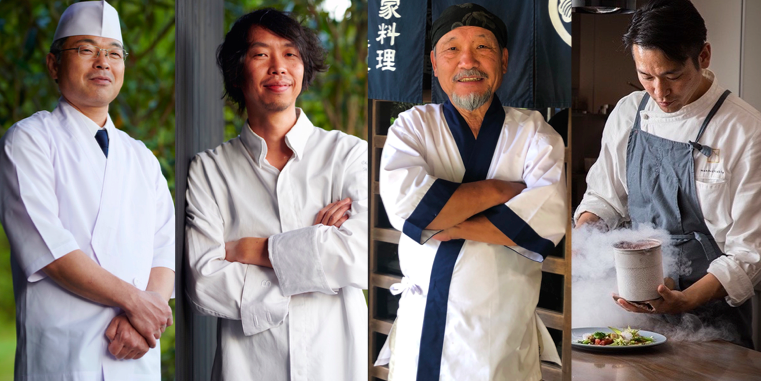 左から「Zenagi」の福岡シェフ・高山シェフ,「音吉」の熊谷シェフ,「mannacktable」の 良波シェフ