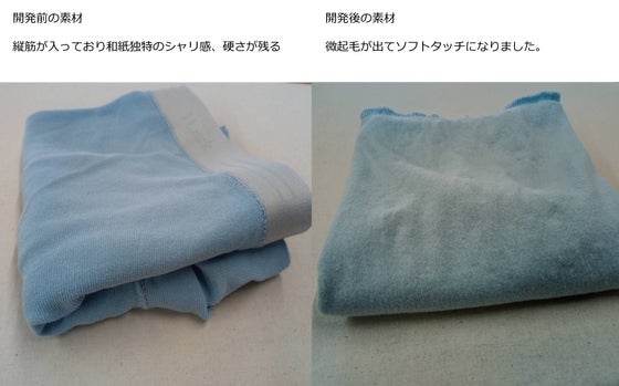 『「和紙×シルク」素材は良いが、和紙×コットンは、着用すると良いが、手肌触りが硬い』