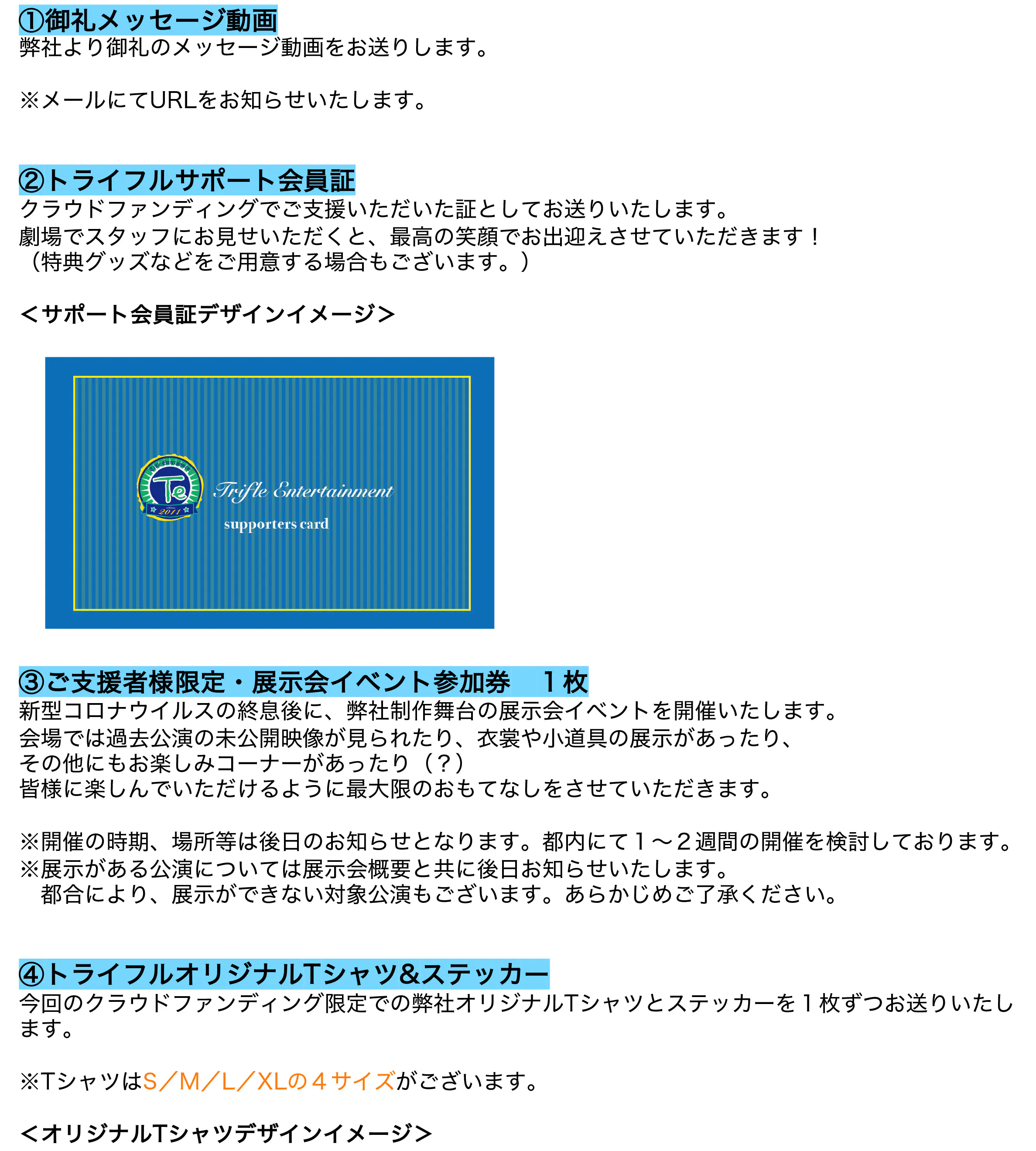 また、来年以降の公演の準備を進めるための準備資金(劇場の予約金、ビジュアル撮影の諸経費など先行してお金のかかる部分)としても使用させていただく場合がございます。