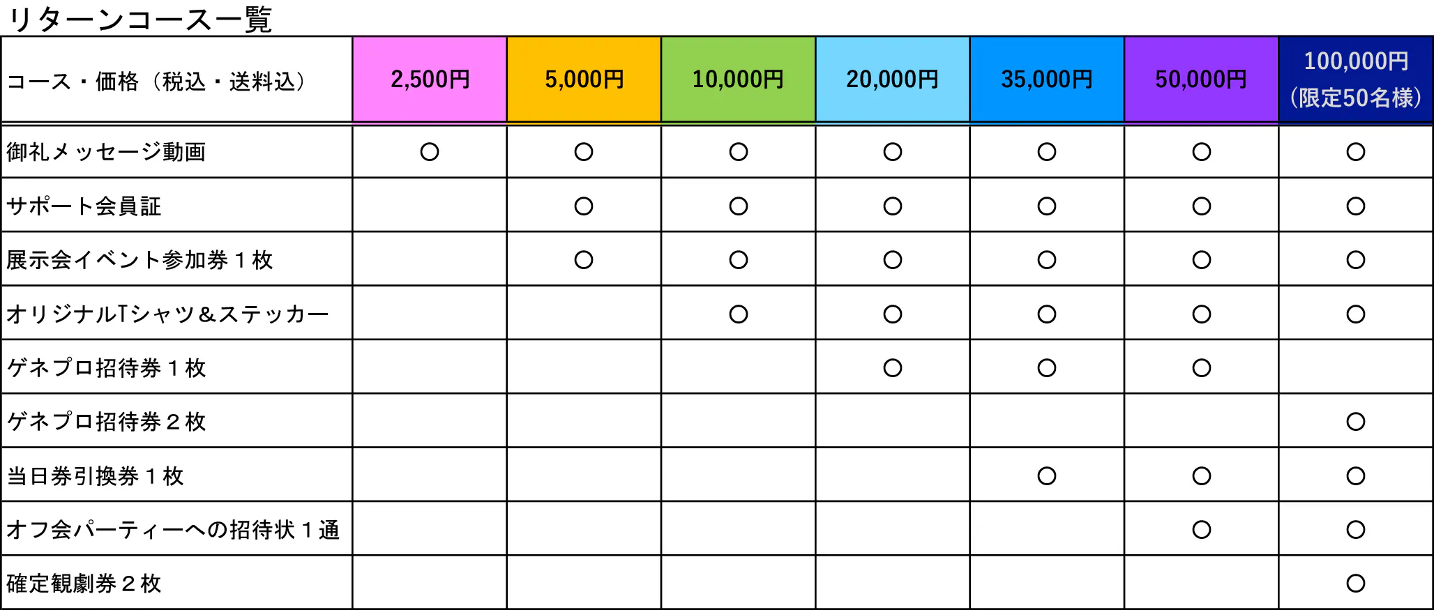 Q:異なるコースにそれぞれ申し込みした場合や同じコースを複数申し込みした場合、リターンアイテムはどのようになりますか?