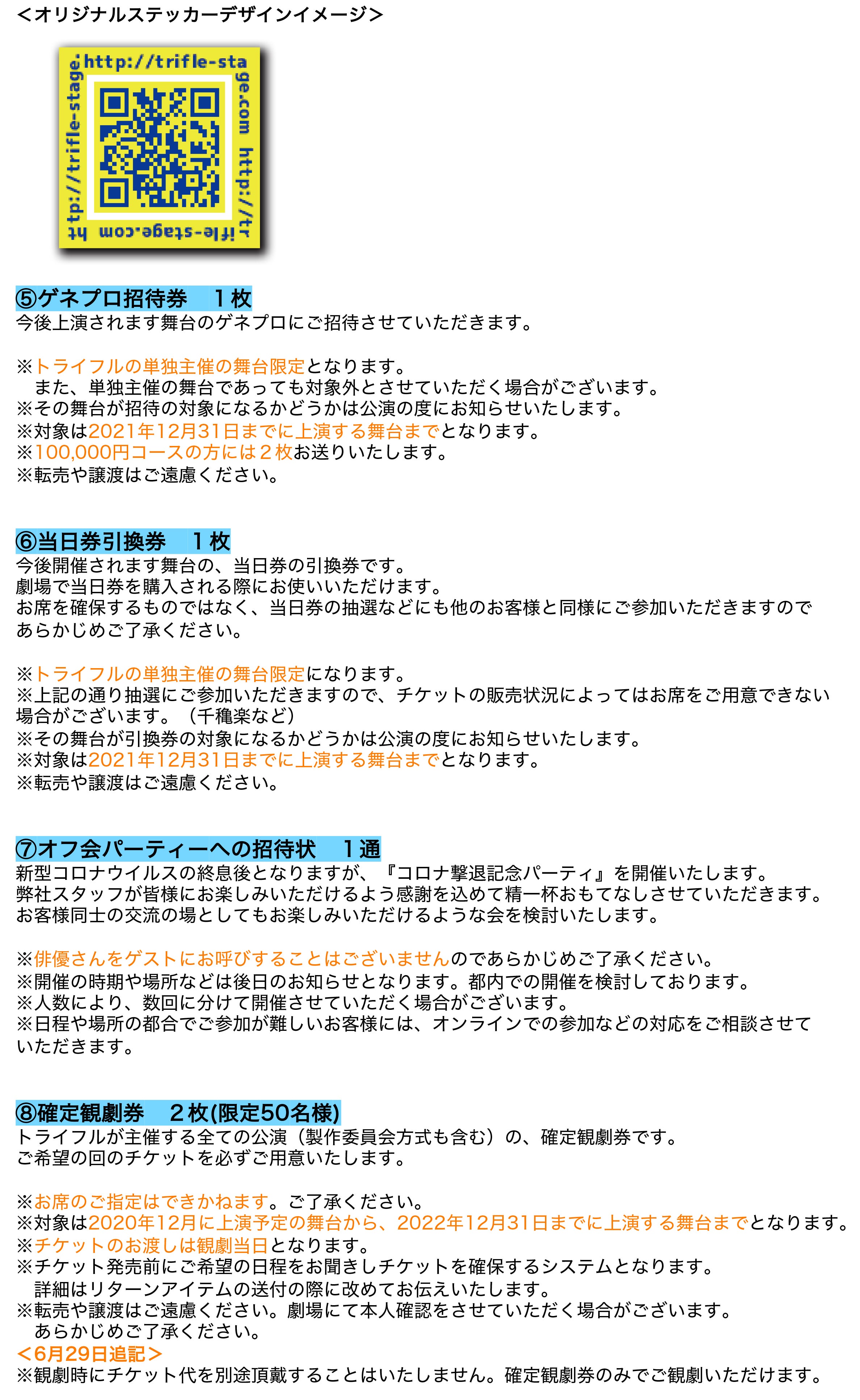 また、来年以降の公演の準備を進めるための準備資金(劇場の予約金、ビジュアル撮影の諸経費など先行してお金のかかる部分)としても使用させていただく場合がございます。