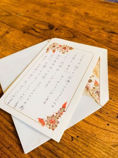 前職でハンドメイドアクセサリー販売をしていたスタッフの作品を御礼のお手紙と共に。