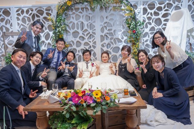 自社のスタッフたち、素敵な装花を作ってくださるフラワーショップさん、