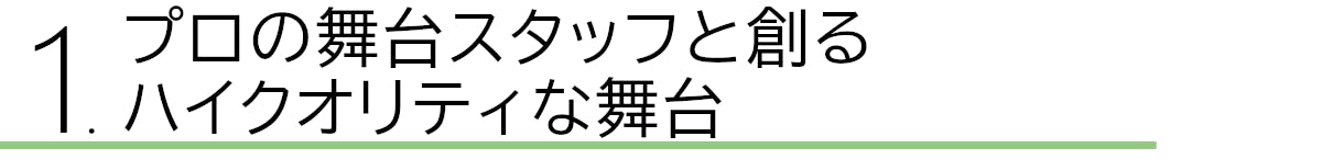 子ども達自身の熱心な取り組みを、プロフェッショナルなスタッフがサポートしています。テーマ性のある脚本や、舞台と客席を世界観で包み込むセット、音響・照明の技術が、子ども達の演技をより輝かせ、私達の舞台を見た方々からは、子どものミュージカルとは思えないクオリティの高いものであると驚きとご好評の声をいただいています。
