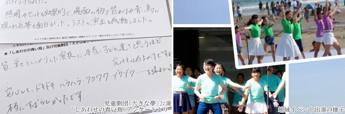 劇団による一方的な興行でなく、毎年の公演の為に皆で一致団結し、劇団と劇団員、劇団員と家族、そして家族を含めた劇団と地域との繋がりを生み出しています。