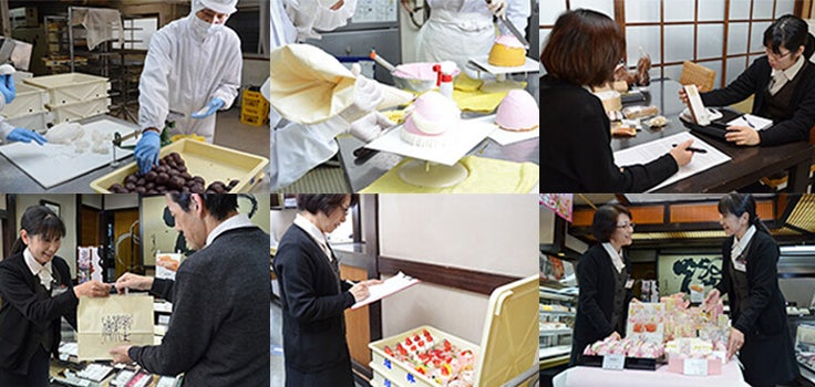 皆様にご来店頂いている店舗は、備前本店のみならず、和気店、赤穂店、相生店、西大寺店、山陽店の直営店全てで、心を込めて接客し、当店のお菓子をさらに楽しんでいただけるよう日々努力しております。