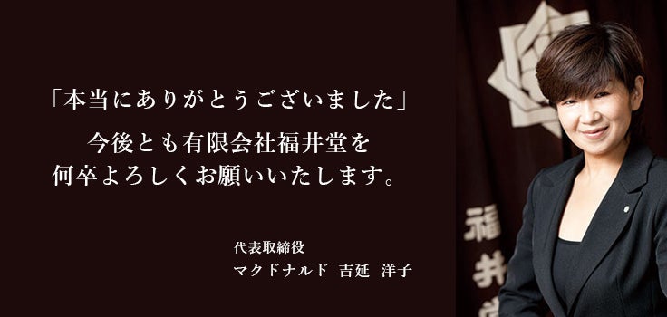 有限会社福井堂、代表取締役のマクドナルド吉延洋子と申します。