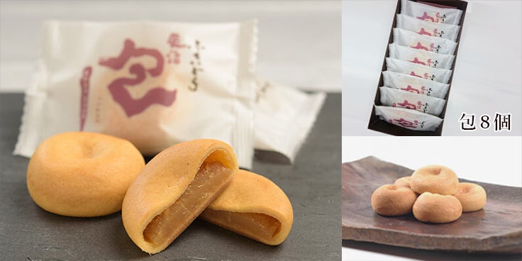 包:独自に開発したもちもちの皮に地元岡山の醤油を使った餡を包みました。もちもちの食感と甘じょっぱい餡がやみつきになる、福井堂で一番人気の和菓子です。