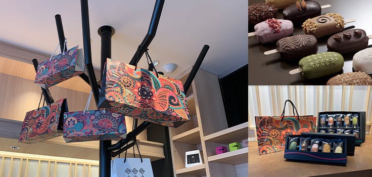 現在、さんすて岡山店、ザ・コートヤード表町店、問屋町テラス店の3店舗を岡山県下で展開しており、店舗の空間テーマは「美術館」です。お菓子を一つのアートととらえ、選んでいただいた色合い・組み合わせによってカラフルにも、シックにも自由に表現していただけます。