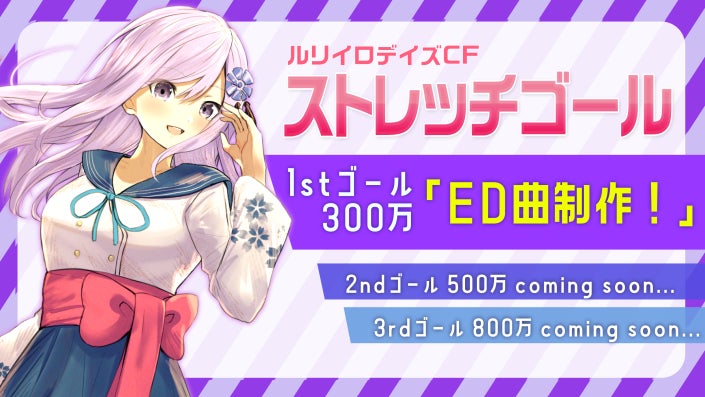 1stストレッチゴールを達成し、【ED楽曲制作】が決定いたしました!!多大なるご支援誠にありがとうございます!!ED楽曲の詳細などは、詳細が決まり次第ご報告させていただきます...!今後とも、ルリイロデイズをよろしくお願いいたします。VNovel運営 taxi