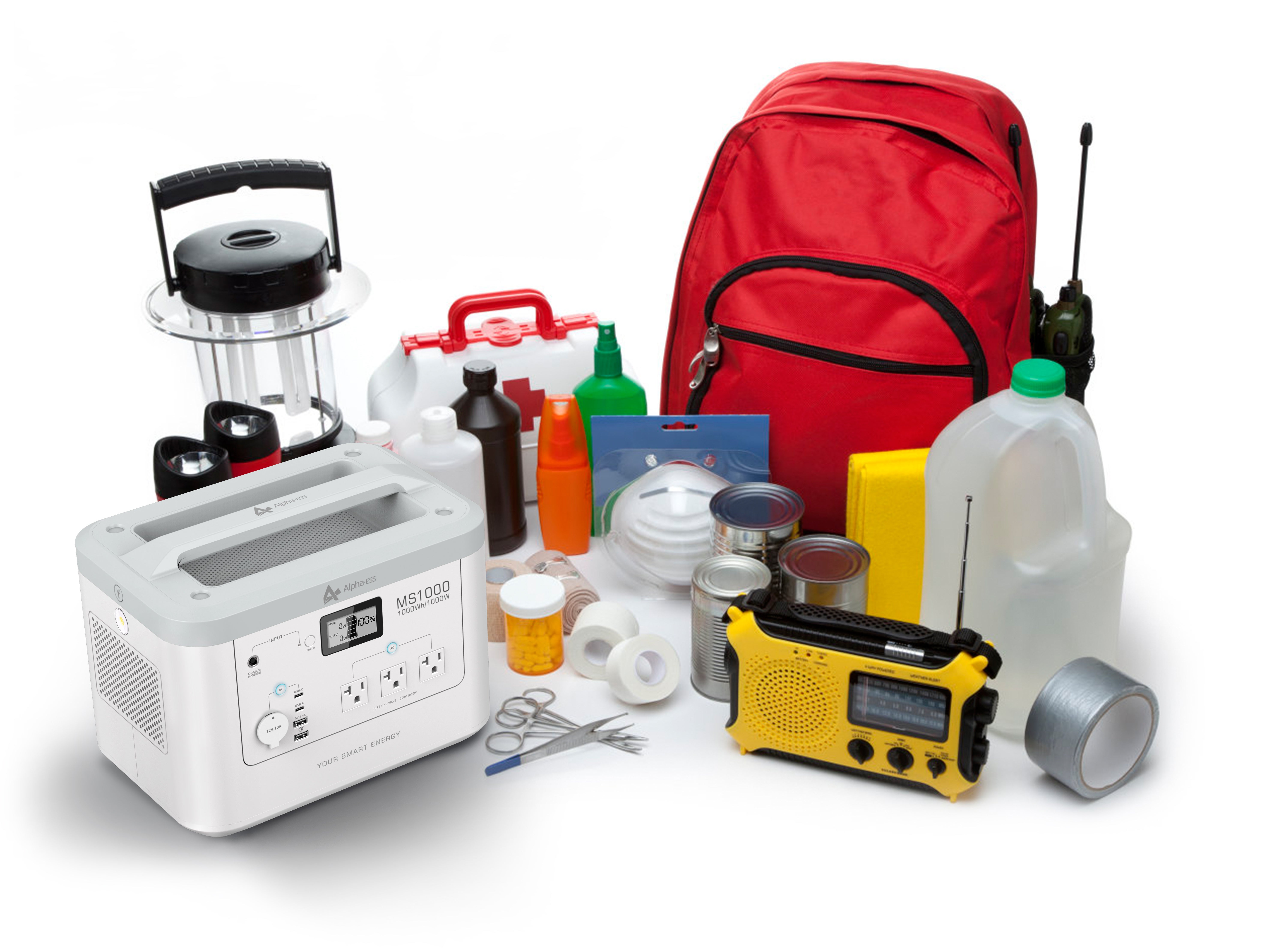 懐中電灯、携帯ラジオ、予備電池、携帯電話の充電器