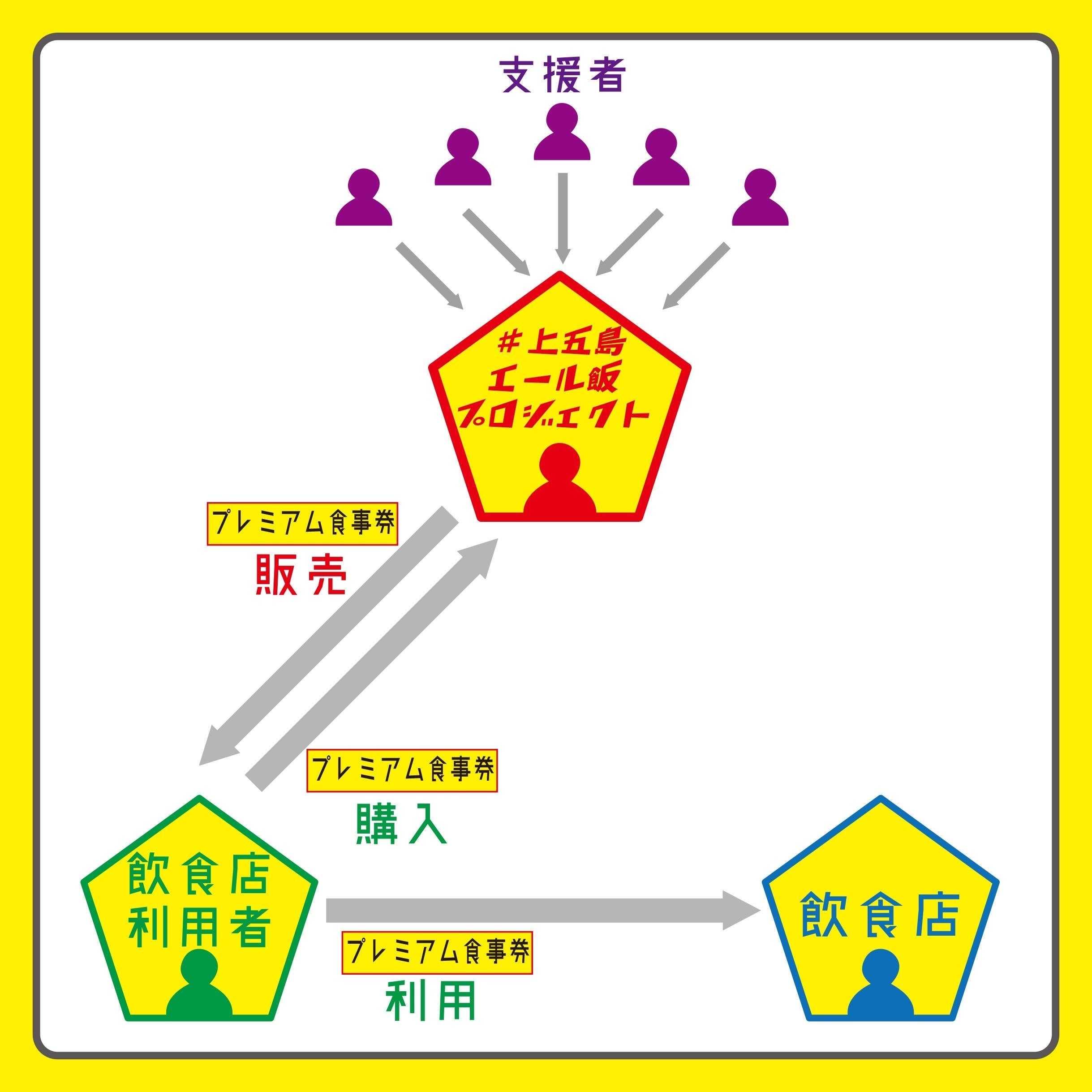 皆様からいただいた支援金をもとに、島内飲食店で利用可能な「プレミアム食事券」を発行し販売致します。