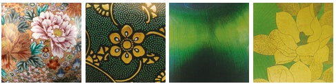 永楽:永楽和全による京焼金襴手手法で全面を赤で下塗りし、その上に金のみで彩色した豪華絢爛な作風が特徴である。