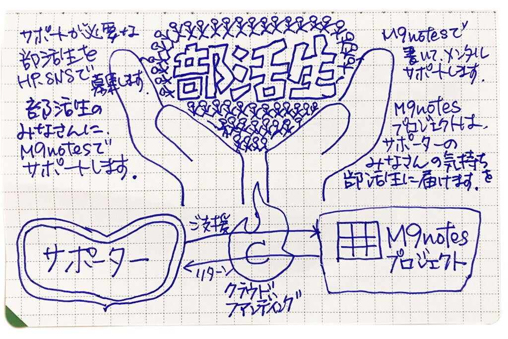 「部活生の夢をノートでつなぐ!」クラウドファンディングのイメージ図