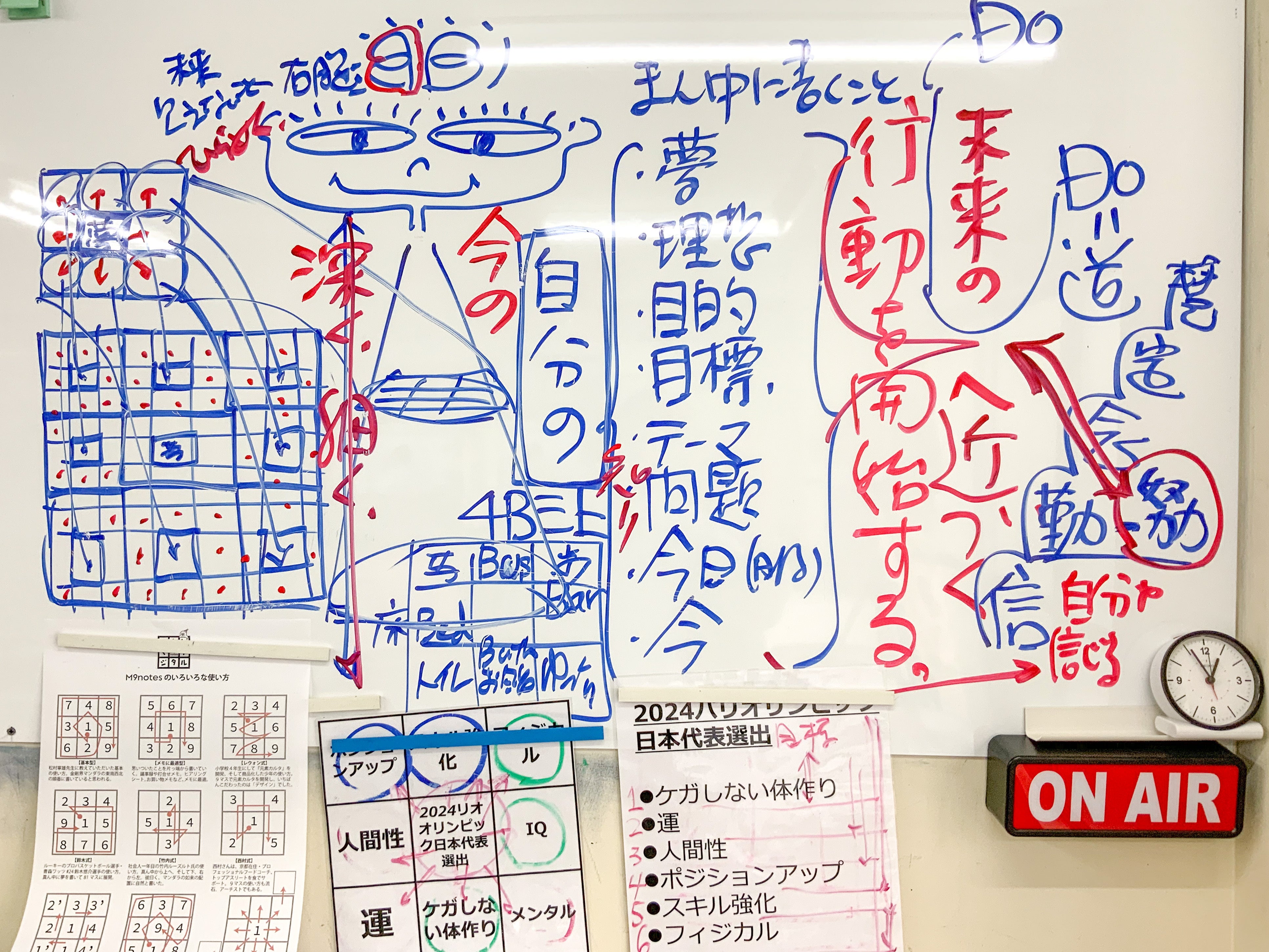 2020/07/19 10:04M9notesは正方形が9ケの正方形が3×3のレイアウトされています。 この形が不思議と右脳の働きを活発にします。 どうして、右脳の働きが活発になることがいいのかというと、右脳は未来のこと、まだ見えないことを考えるのが得意だからです。 3×3のレイアトされた正方形のどこから書いてもいいです。書き方は自由です。今までの事例の中では、真ん中から書き始める事例が多いです。私も真ん中から書き始めることが多いです。 では、真ん中に何を書いて「考える」をはじめましょうか。例えば、・夢・理想・目標・テーマ・問題・今日・今などを真ん中に書いて始めます。 ここで重要なのは、この「夢・理想・目標・テーマ・問題・今日・今」の前に「自分の」がつきます。真ん中には、・自分の夢・自分の理想・自分の目標・自分のテーマ・自分の問題・自分の今日・今の自分 つまり自分の未来です。自分の未来を書いて考えます。ぜひ試してみてください。 M9notesを使って「自分のこと」を考える方法は簡単です。3×3の正方形、1つの正方形の中に1つのフレーズを書いて、全体をながめます。そして、思いついたことがあったら、正方形に書きます。全体をながめます。これをくり返すだけです。 真ん中のまわりの正方形に書かれたことは、自分で考え出した、自分の「夢・理想・目標・テーマ・問題・今日・今」を実現する方法です。 次にあなたがすることは、自分の未来に近づく行動を始めることです。さあ、始めてみてください。 3×3のM9notesは、リスト形式と違って、上からでなく、今の自分が出来ることから始めればいいです。どこから始めてもいいのです。 自分の未来に近づくためには、まずは「自分を知る」そして、「自分を信じる」ことが必要です。これはM9notesで出来ました。次は行動を始めることです。 小さな行動を少しずつ積み重ねることをベストを尽くすといいます。これが自分らしさです。そして、未来に近づく行動を始めることを、努力といいます。自分を知り、自分を信じ、努力をはじめる。未来に近づくための近道はないようです。ぜひ、小さな努力を始めてください。 もっと見る