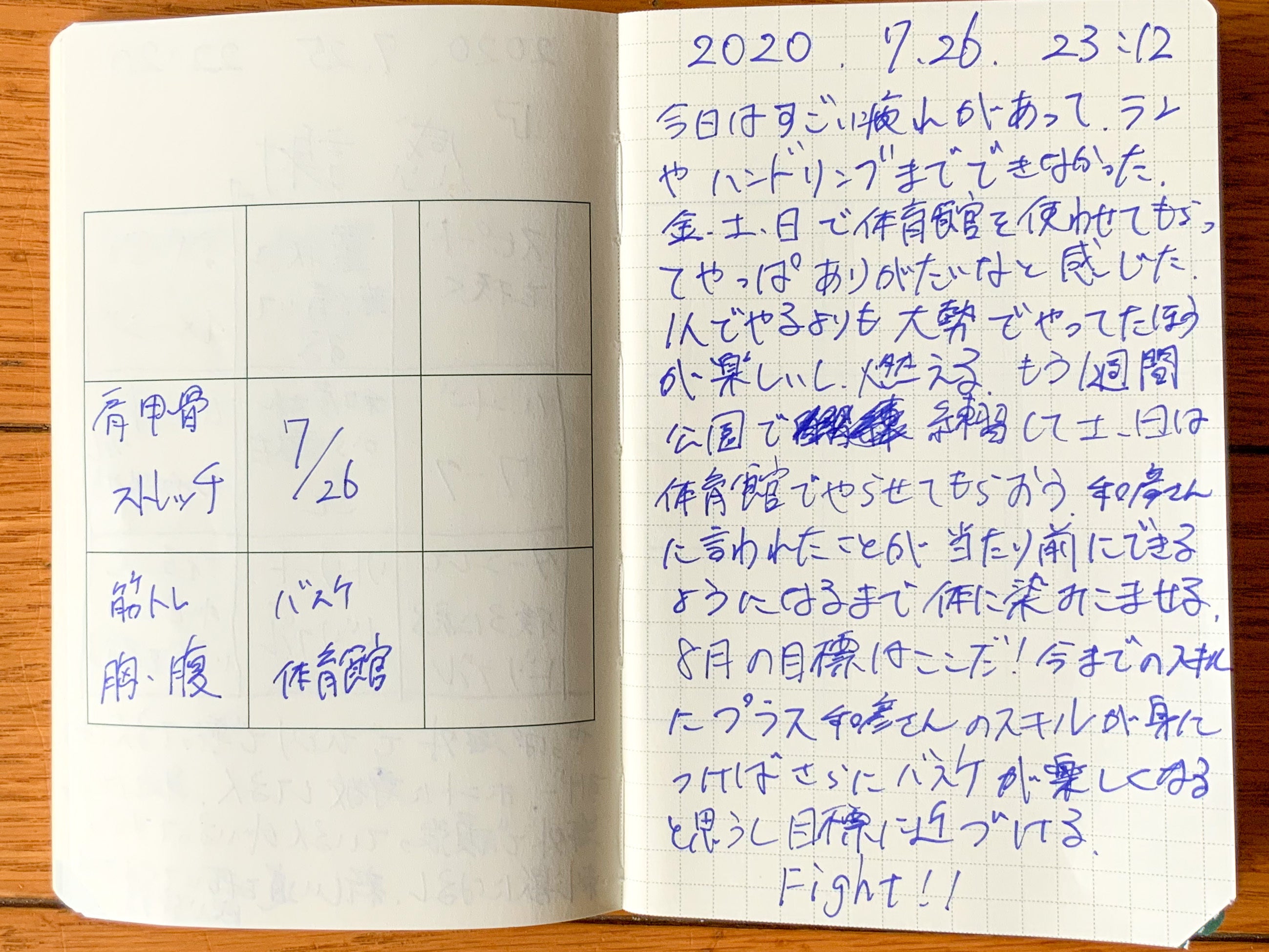 2020/07/27 07:33本当だったら東京オリンピックがはじまっていました。みなさま、7月のこの連休はいかがお過ごしでしたでしょうか。 このクラウドファンディングもあと残り4日になりました。目標額にはとてもとどきませんが、当プロジェクトは5000人の部活生の夢をサポートさせていただきたいという思いは変わりません。 このプロジェクトで今現在、私たちに加え17名のサポーターがいます。とてもうれしいです。 わが家の大学部活のセレクションを待つ部活生の連休を紹介します。まだセレクションの日程がわかりません。本当にあるのかとさえ思います。それでも夢をつないで、毎日、工夫してセレクションに向けトレーニングしています。 その様子を、彼のM9notesを少し盗み見してみました。2020年7月23日(木)二重とびこんなに飛べるんだね。UberEatsのバイト?2020年7月24日(金)久しぶりに母校の練習に参加して、体育館でバッシュを履いて本気でバスケットをしたようです。2020年7月25日(土)高校の先輩の海外(今年はオランダ)でプロバスケ選手として活躍している横山選手と一緒に練習ををしていただいたようです。バスケ以外のことも学んだようです。2020年7月26日(日)だいぶ疲れているようです。8月の目標が見つかってよかったですね。素晴らしい連休でしたね。 もっと見る