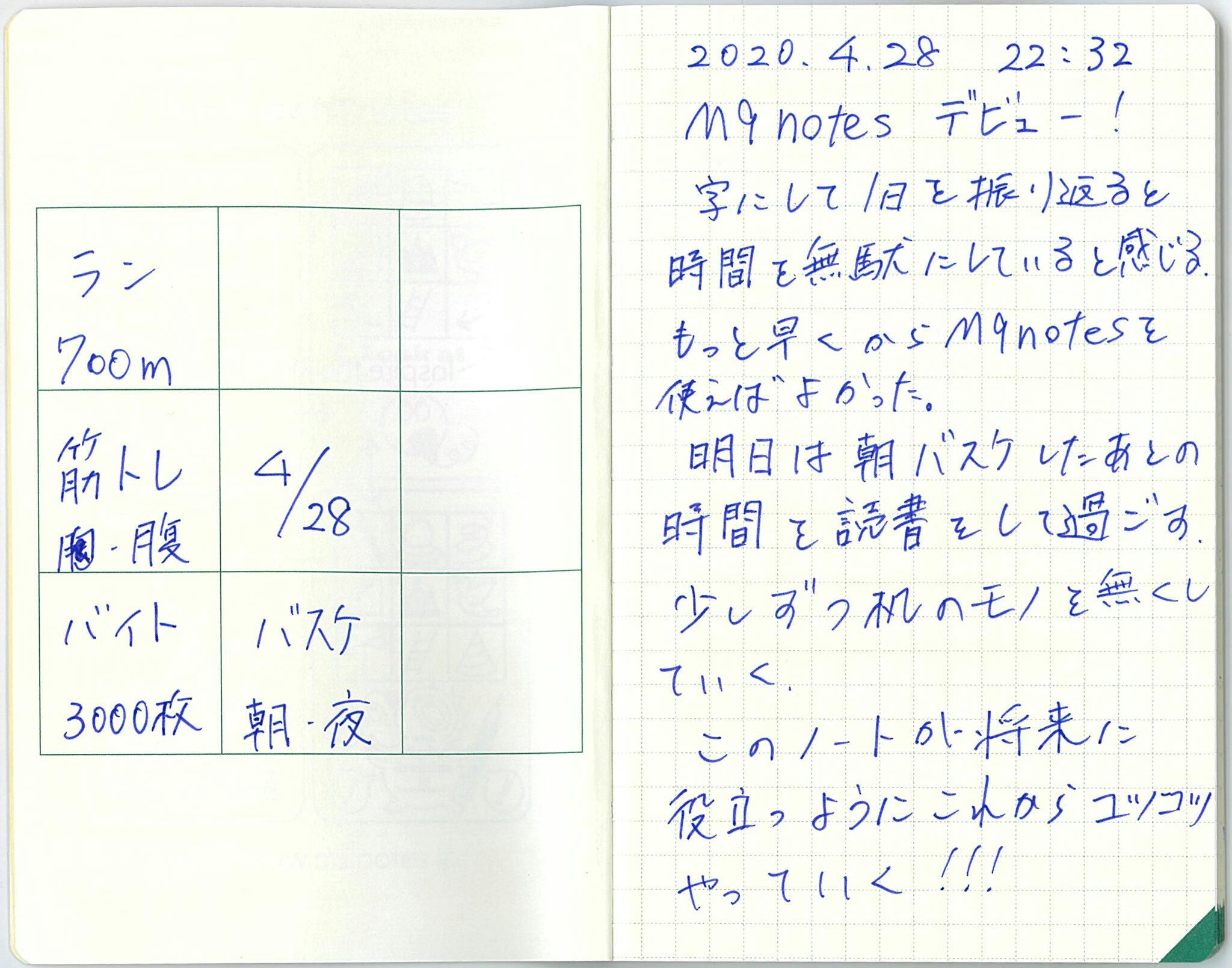 彼は、ちょうどバスケ部のセレクションが未定になった4月の終わり頃から『M9notes』で日記を書くことを始めました。今では、そのノートは2冊目になっています。彼は夢を実現するために、毎日、ノートに書くことで自分自身と向き合うことを始めました。今回のオンラインは、コロナに影響を受けた18歳の部活生のノートを披露しました。このようなときこそ、どうか自分自身と向き合い、自分に自信を持って、夢に向かってコツコツと努力を続けて欲しいです。きっと報われます。