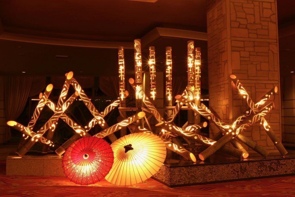 そこで開催予定の「京都七夕スカイランタン祭り」の会場に、オブジェとして設置する「彫刻竹あかり」を家庭、オフィス用インテリア、照明として皆様に再利用して頂けないかと考えました。