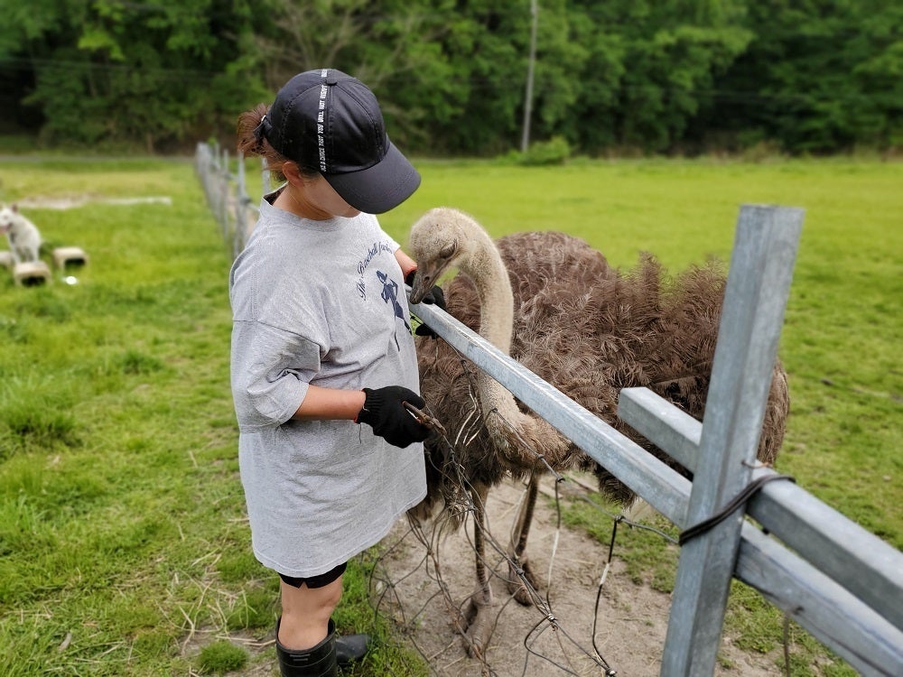 みなさまこんにちは!いつもご覧頂きありがとうございます。本日はようやく新たなリターンの追加準備が整ったことをお知らせいたします!今回は飲むヨーグルトと、カチョカバロイタリアンスパイシー(チーズ)というなにやら長いネーミングの2品目が新たに仲間入りを果たしました。どちらも牧場スタッフの間でも人気の製品です!飲むヨーグルトはとても濃厚なのでいくら飲む前によく振って飲んだとしても、最後はスプーンですくってフィニッシュすることをおススメするほどです。カチョカバロイタリアンスパイシーは、弥平唐辛子という地場の野菜で作られた香辛料を使いながらも、イタリアンなテイストに引き締めた少しピリ辛なカチョカバロチーズです。軽く焼くととろりと伸び、香ばしい風味が食欲をそそります。もう一つ準備が整ったことと言えば・・・ただ今土日限定でお客様にご来場頂いている状況ですので、平日の間に場内の整備をし、皆さまに安心・安全にお越し頂ける努力をしております。そんな中、先日からポニーとダチョウがいつも走り回っている庭の柵直しを徐々に進めていたのですが、本日ようやく仮完成いたしました!なぜ仮かと言うと・・柵を直しているといつもノソノソと近寄って来るダチョウのサマンサの妨害行為にあっていたからです。指や手首や腕を何度も何度もパクパクと。一回だけならそんに痛くないんですが、同じところを何度もくちばしで挟まれるとさすがにちょっとコラーッてなります!!ただかまって欲しいだけなんでしょうね。でも作業が全然進みません!ということで仮止めはできましたが、またポニーが外の草欲しさに柵に寄りかかって倒すということの繰り返しになりそうで怖いです。でもポニーやダチョウは全然怖くないので皆さまご来場の際は是非近くで見てあげてください!ダチョウのサマンサに近寄るときは服などをパクつかれないようにお気をつけください。首が長いので柵から離れていてもニュッと伸びてきますよ!そんなこんなでサマンサと私の戦いはまだまだ続きます・・・。