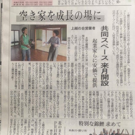2017年5月26日(金曜日)の新潟日報に、『空き家BASE』の記事が掲載されました^^