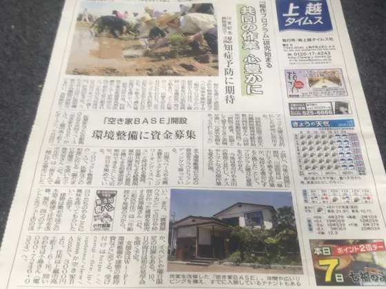『空き家BASE』で実施中の【クラウドファンディング】を、上越タイムスさんが取り上げてくださいました。