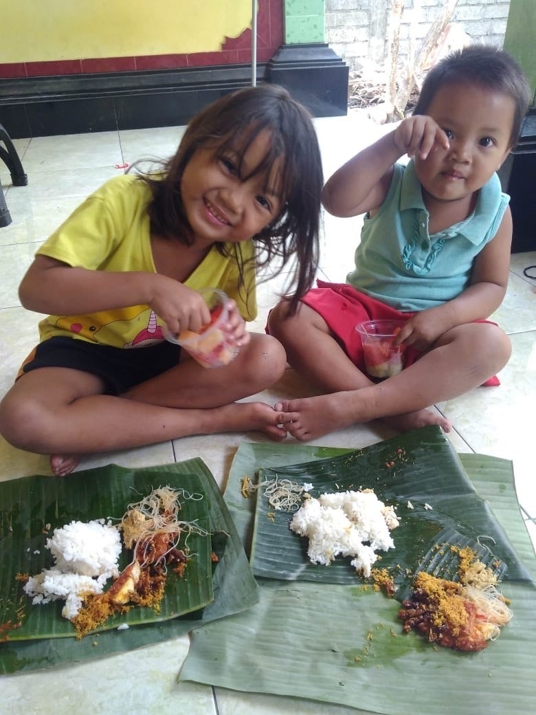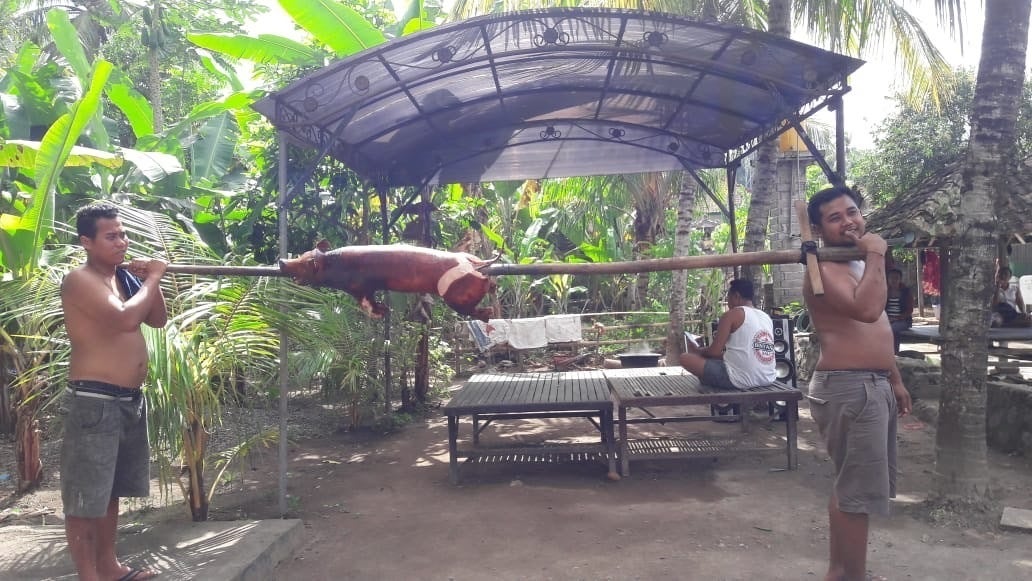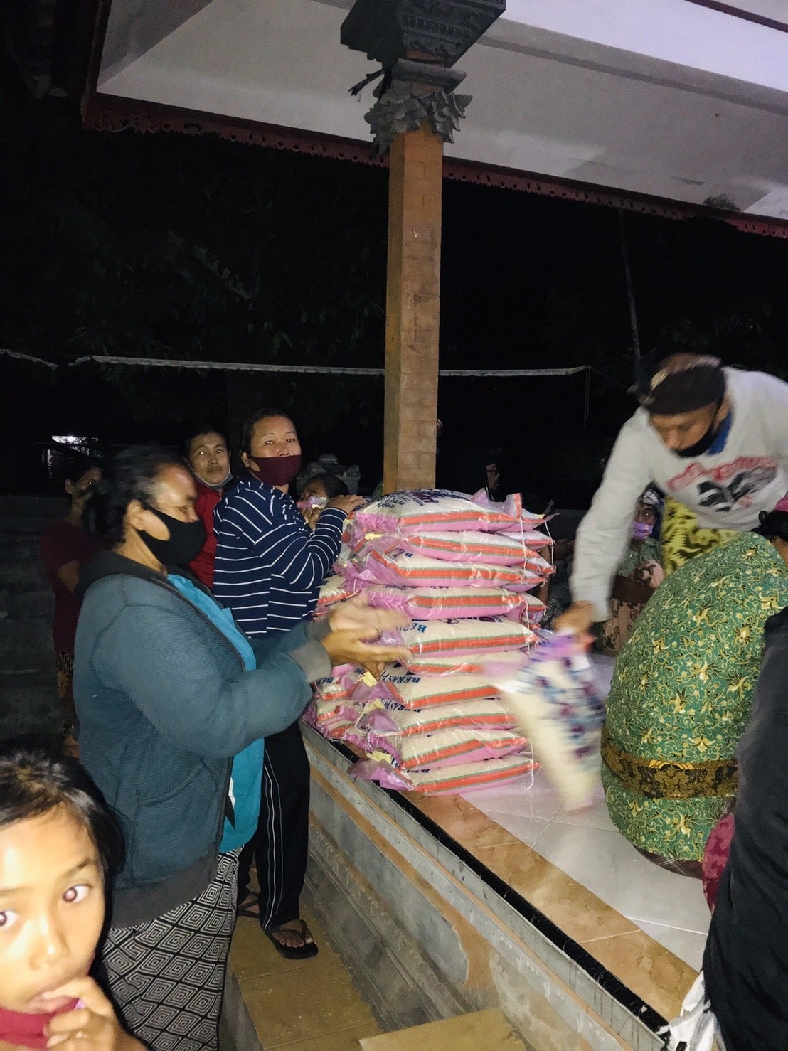 バリ人皆んな大好きバビグリン(豚の丸焼き)100食、支援物資100世帯分を届けに行ってきました。