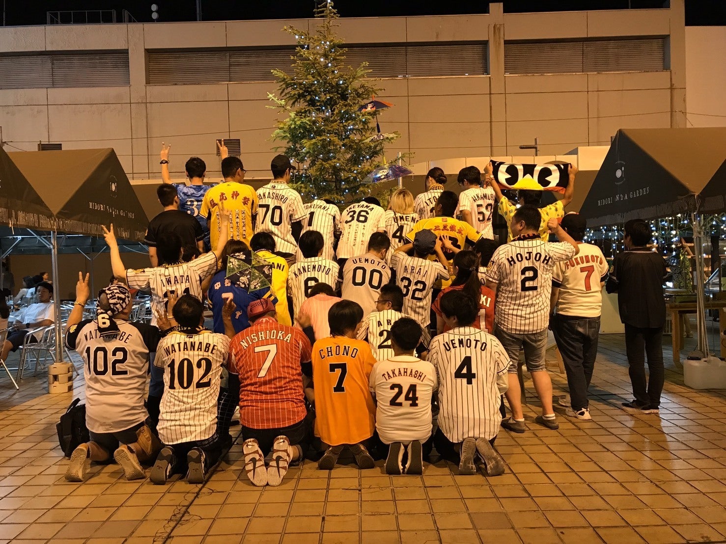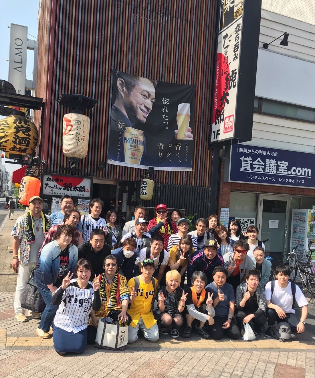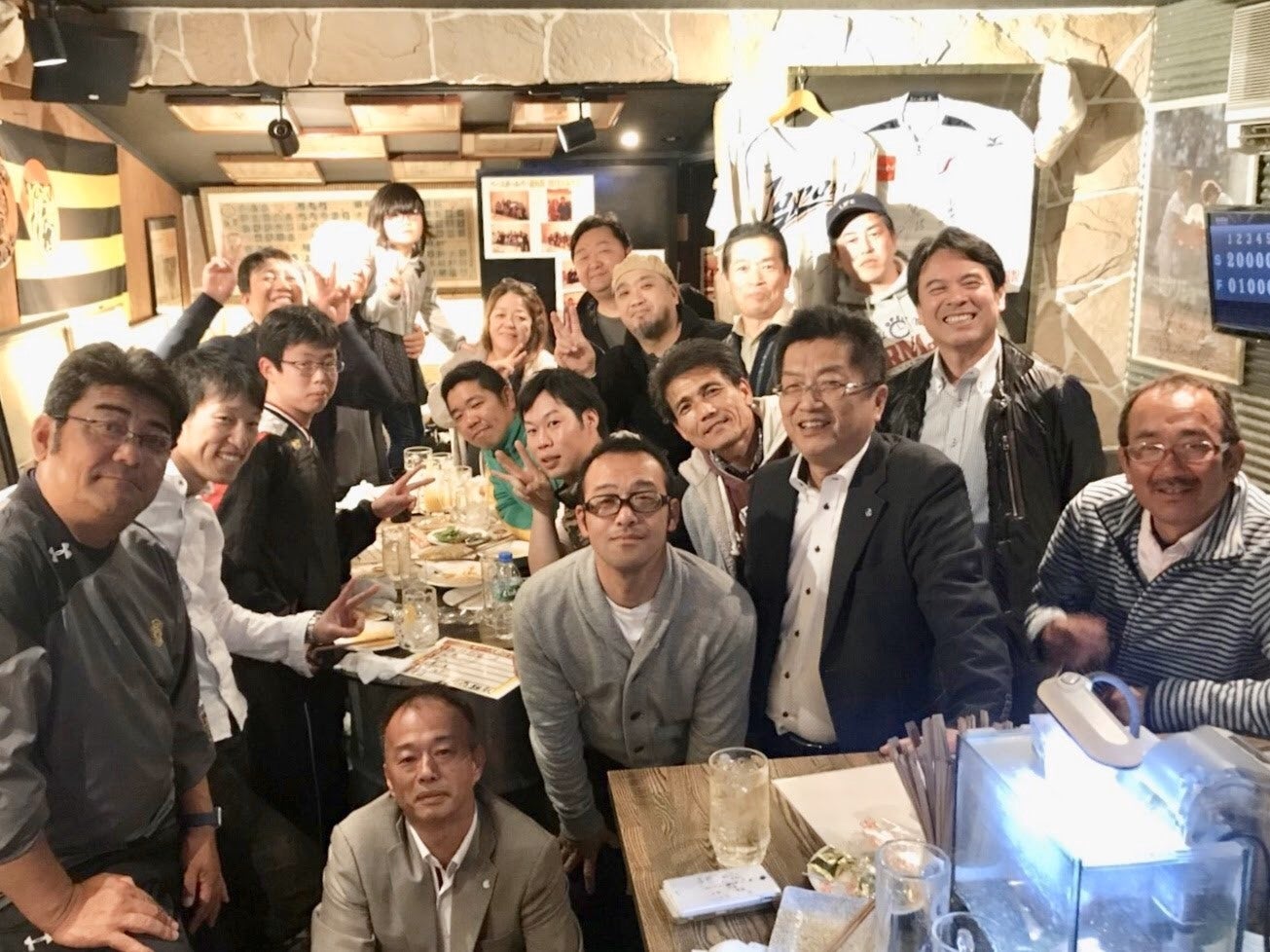 お気に入り球団のユニフォームを着用し、ただただ呑むだけの会です。しかしここは野球ファンが集う場所、いつの間にか野球談議に花を咲かせています。