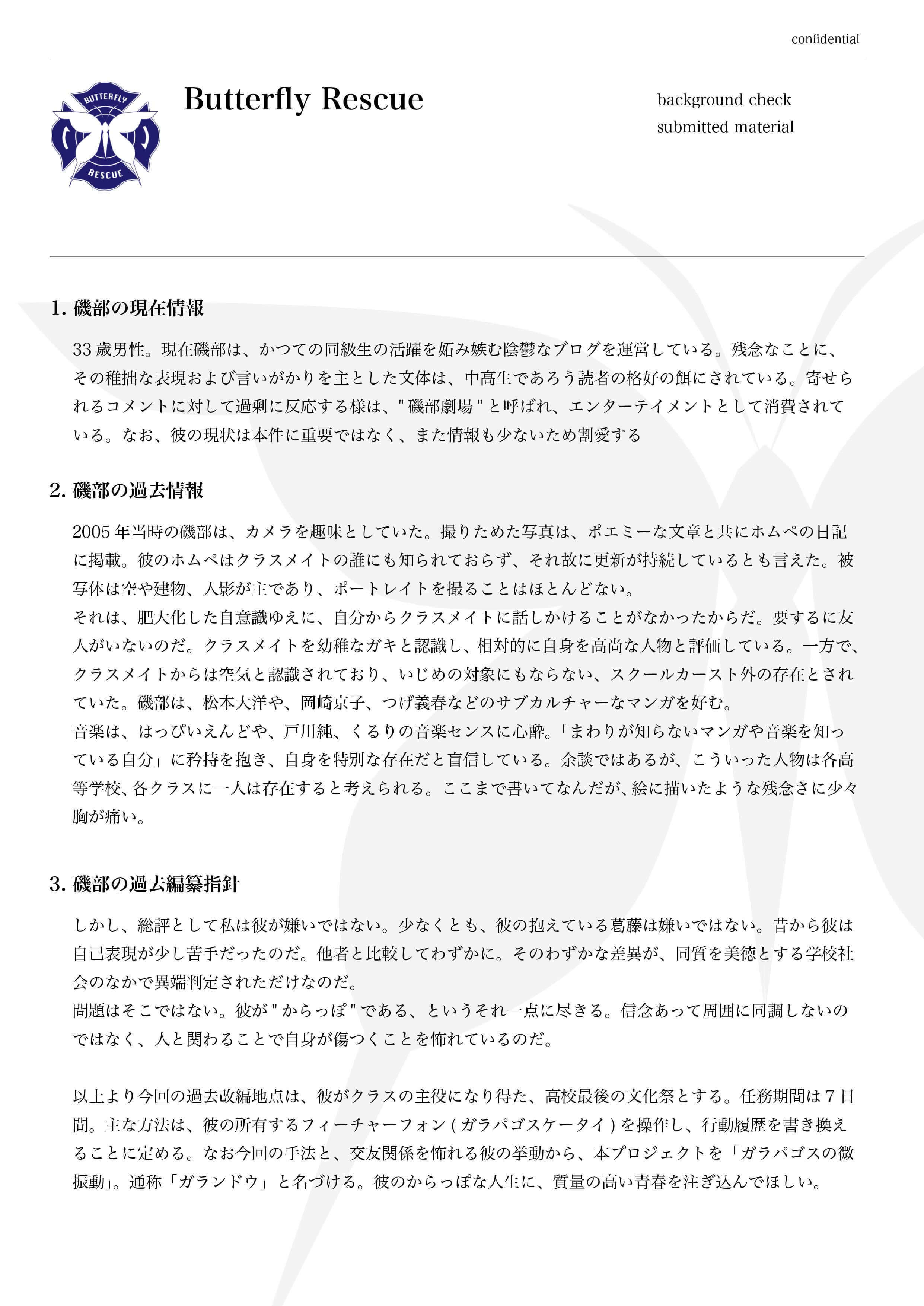 →謎の組織「Butterfly Rescue」があなたにインタビューをし、調査レポートを執筆致します。