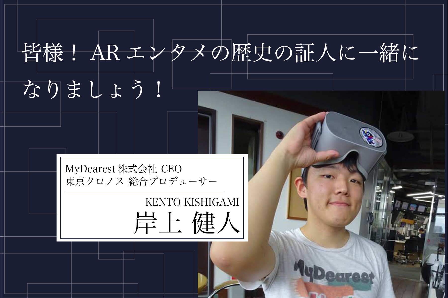 村人Aに魂を吹き込む。全ての人を主人公にすると決めた20代の若者たちが、現実と物語をひとつにつなぐ体験を、ARの技術を使って提供する、 前代未聞の挑戦を始めようとしています。設立したばかりのスタートアップ。世界的にも成功例に乏しい、自宅を舞台としたAR体験。いくらなんでも向こう見ずが過ぎるのではないか?それでも彼らは進むと決めました。新しいエンターテインメントを定義したいから。分断の不安が渦巻く時代の空気に、連帯の安堵を提供したいから。何より、あなたちを主人公にしたいから。次代を担う才能によって、歴史が塗り替わろうとしています。その時に私たちが採るべき選択肢は、村人Aとしてそれを眺めることでしょうか?それとも、主人公の一人としてそれを支える事でしょうか?
