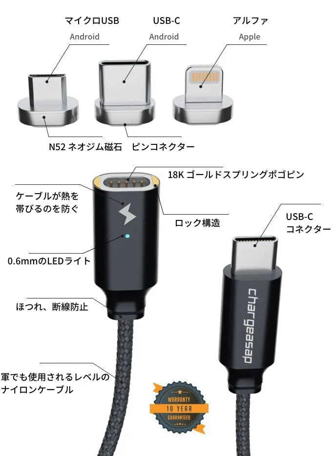最先端 様々なデバイスに対応 USB-C端子のマグネット式USBケーブル