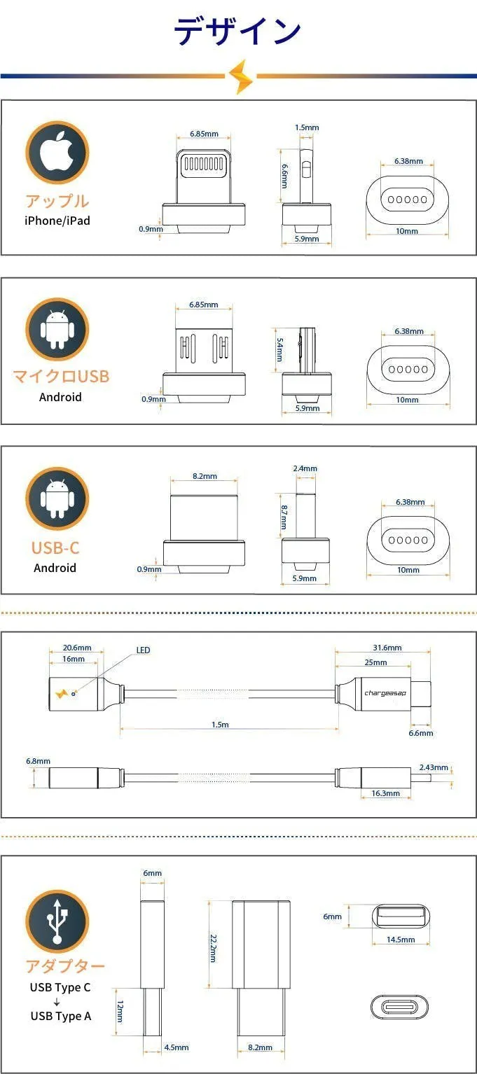・ピタッと一発で繋がる、世界一パワフルで、最先端のマグネット式ケーブル