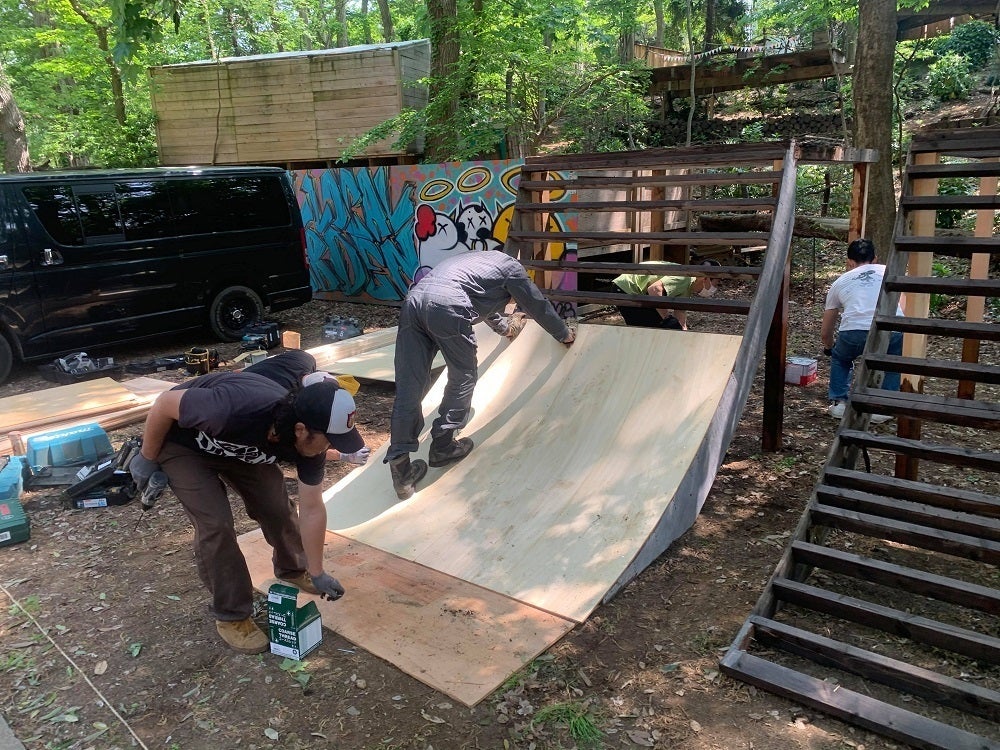 途中から地元BMXライダーの方々にもご協力を頂き、製作しております。