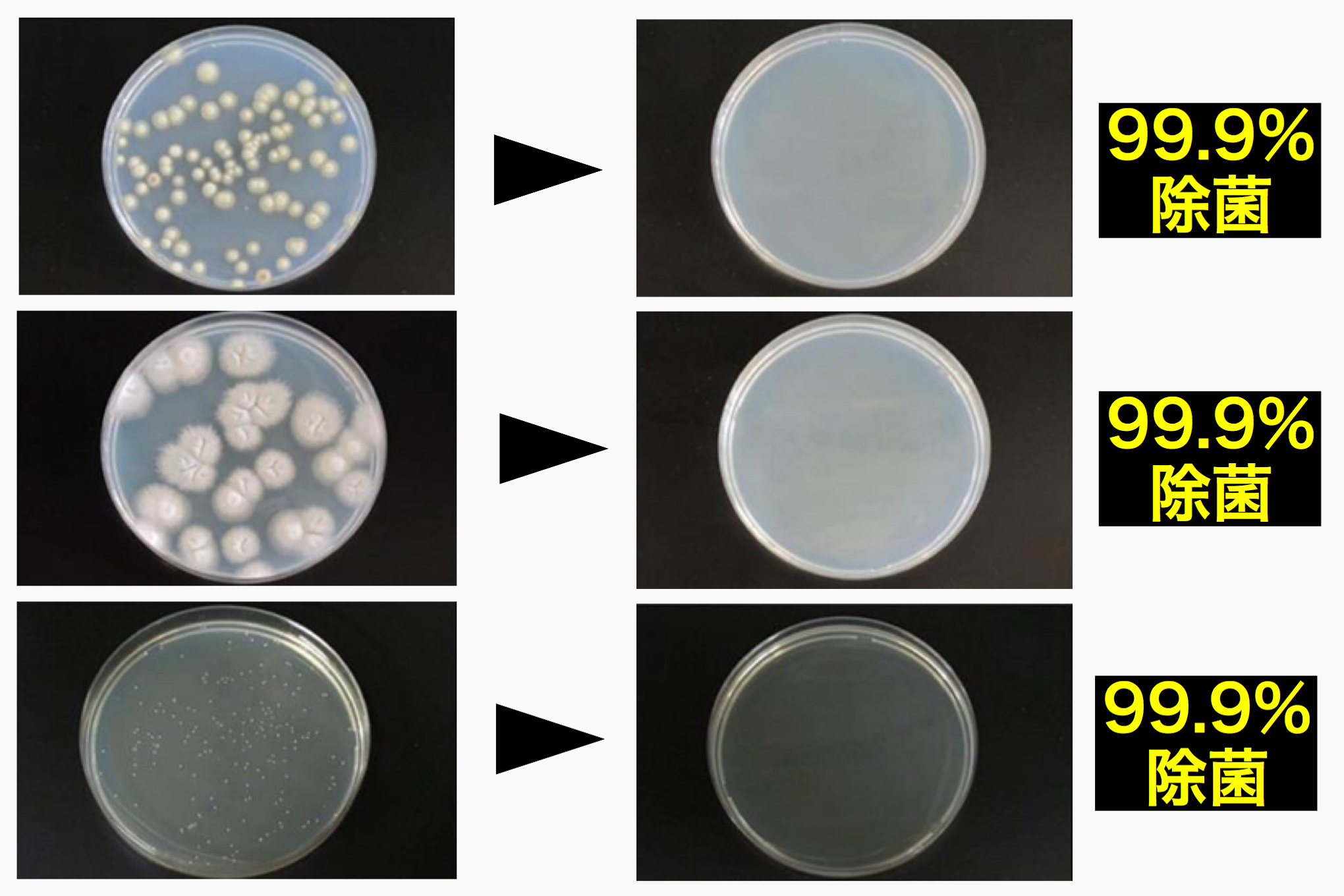 専門機関での試験により99.9%除菌することを証明済みです。