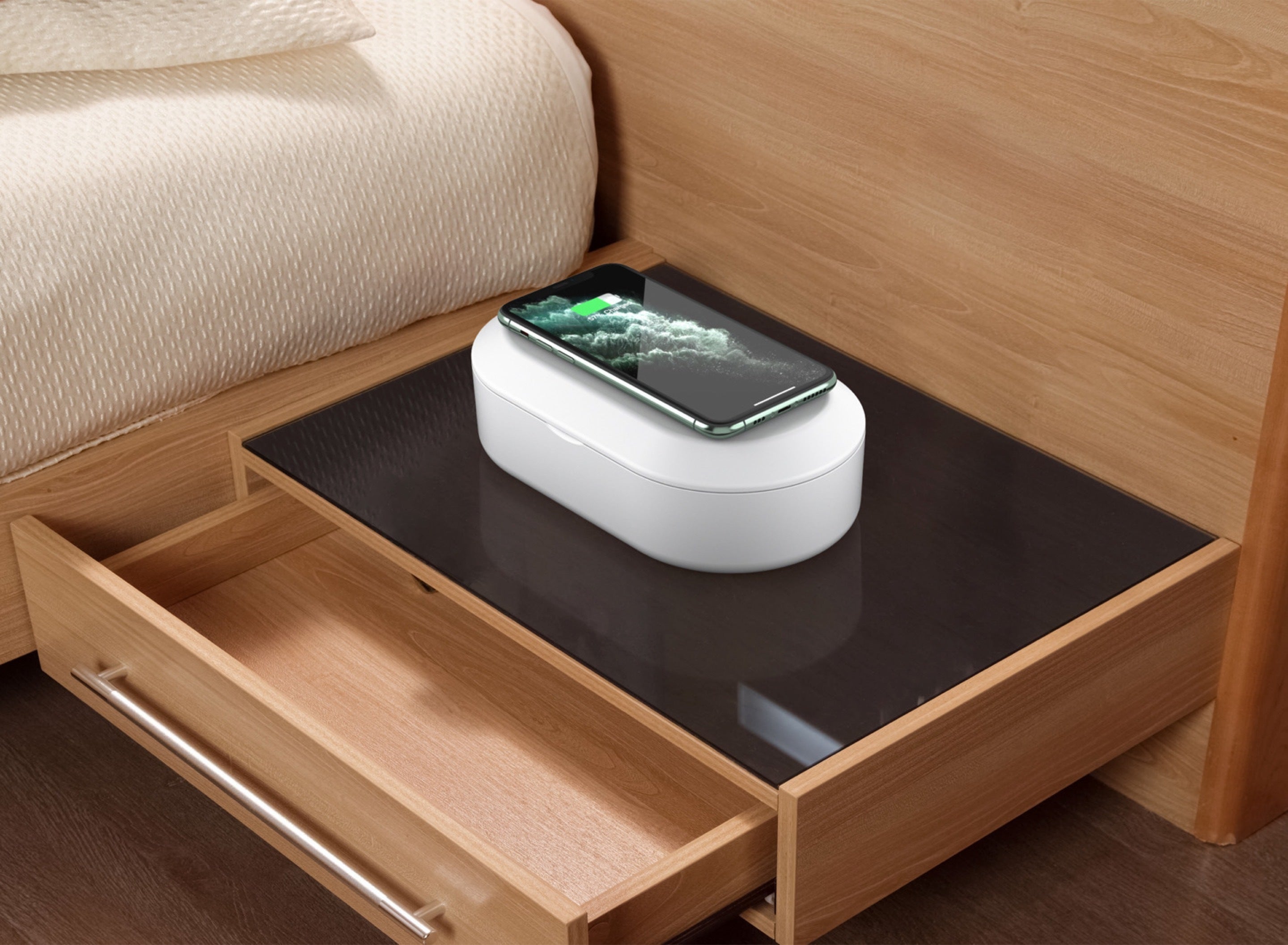 フタ部分にワイヤレス充電機能を搭載しているので使用しないときはワイヤレス充電器として使用できます!
